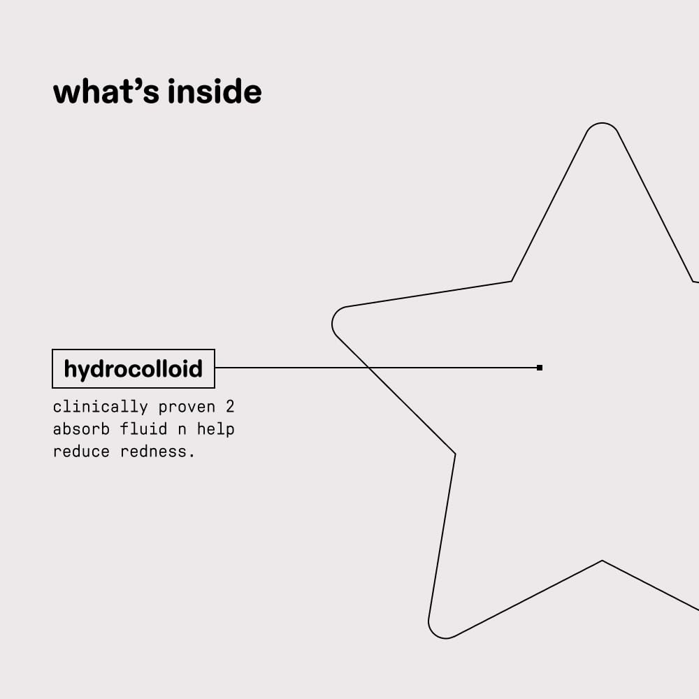 - A SINGLE INGREDIENT: Hydro-Stars have only one ingredient: hydrocolloid, a substance borrowed from surgical dressing that’s clinically proven to improve the appearance of pimples overnight.