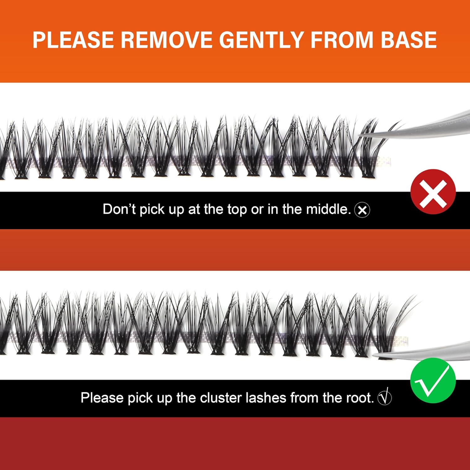 - ๐๐ฎ๐๐ ๐๐ผ W๐ฒ๐ฎ๐ฟ L๐ฎ๐๐ต๐ฒ๐ C๐น๐๐๐๐ฒ๐ฟ Apply a thin layer of eyelash adhesive to the root of natural eyelashes, gently place the eyelash cluster under the bottom of natural lashes using eyelash adhesive, and then apply a thin layer of eyelash sealant to fix the lash cluster in place and eliminate any residue