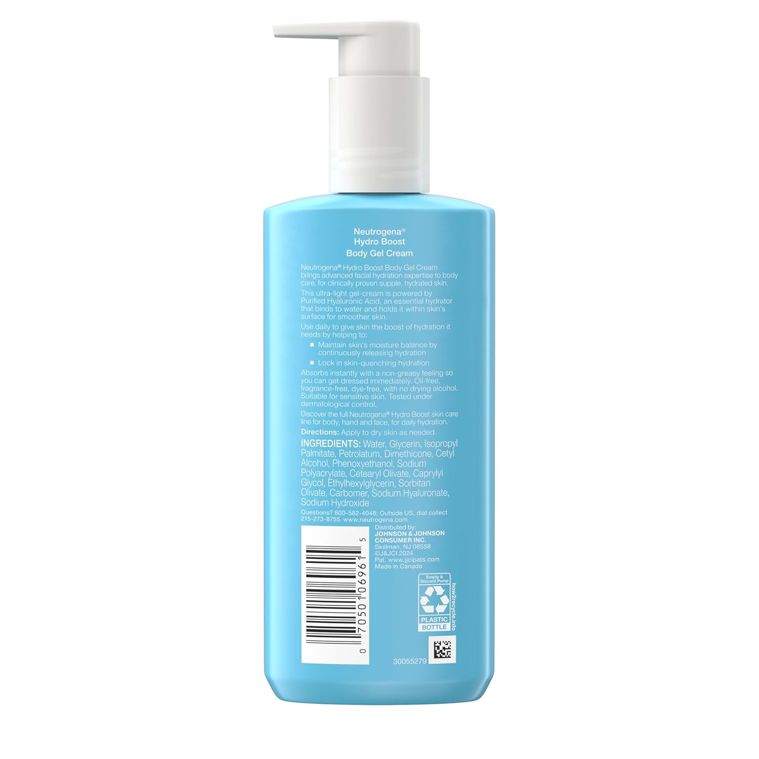 - Body Gel CREAM: Neutrogena hydro boost body gel cream is fragrance-free and infused with hyaluronic acid to instantly nourish thirsty skin; Neutrogena is the #1 selling facial skincare brand