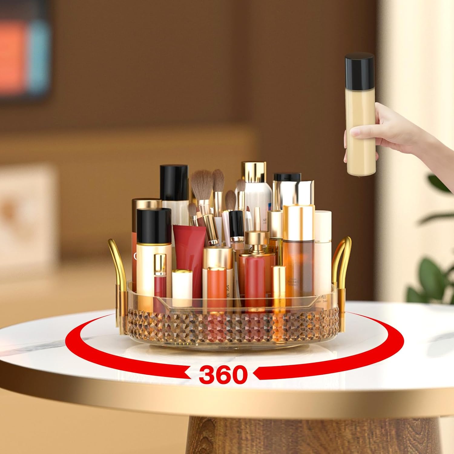 - Washable and Metal Stand:➤Awenia cosmetic organizer with clear acrylic material can be washed or wiped with a damp cloth,cleaned as good as new.Gold stainless steel stand and unique diamond pattern make the perfume organizer more strong,firm beautiful and easy to move. The 360 makeup organizer can be place in Dresser,Bathroom and Kitchen.