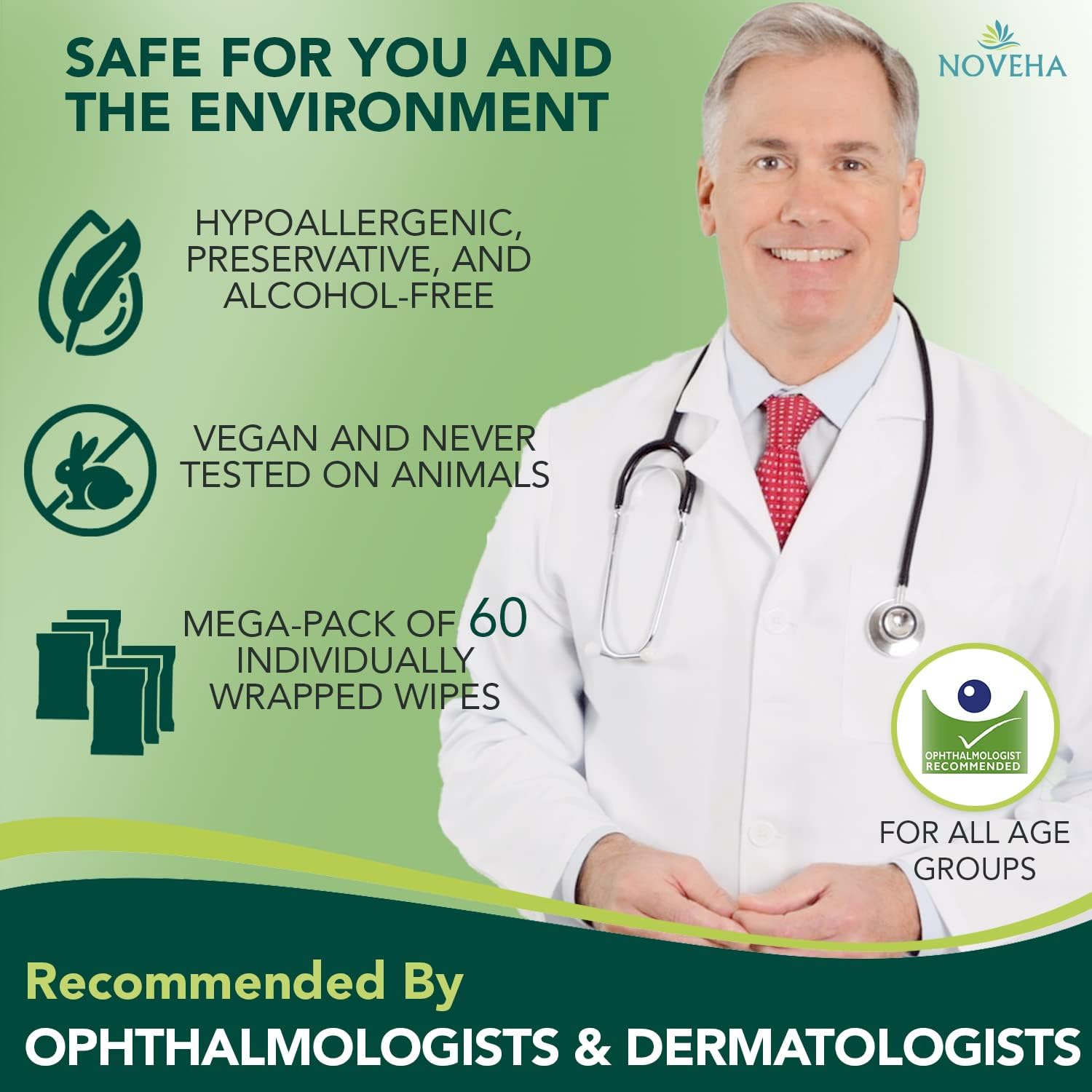 - BACKED BY SCIENCE: Our eyelid wipes undergo meticulous inspection for safety and quality. It’s time to start treating your eyes like they really deserve. Click ‘Add to cart’ and order your NOVEHA Demodex eye wipes TODAY!