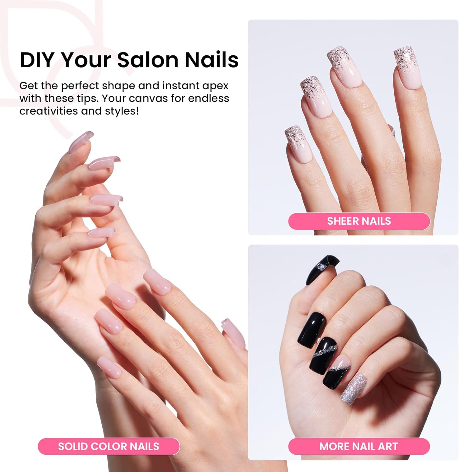 Beetles Tipex Instant Apex Nail Tips Kit Short Square , 224 Pcs Pre-Building Pre-Etched False Nail Tips with Tipex Nail Glue, Mini Nail Lamp-Thick Acrylic Nail Tips Set