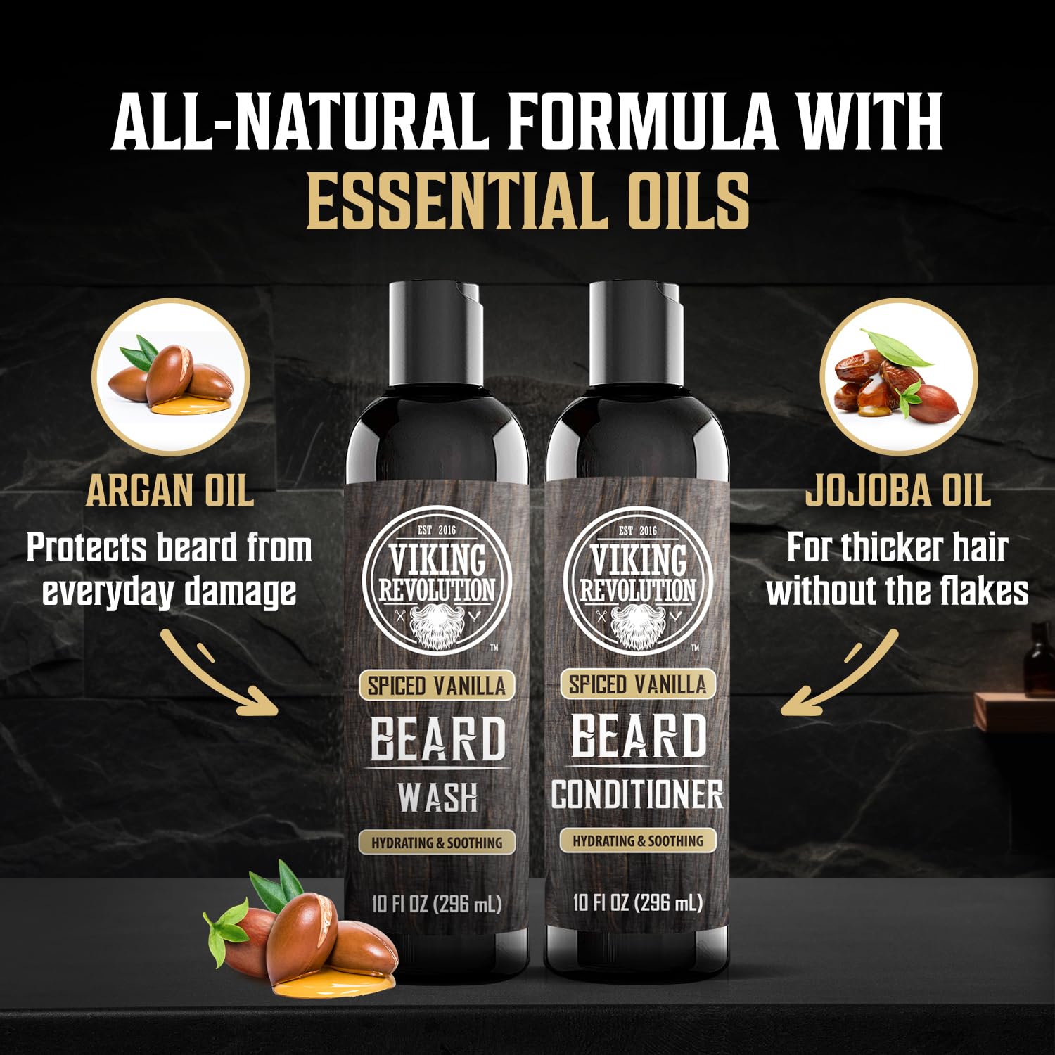 Viking Revolution Beard Wash and Beard Conditioner for Men with Argan Oil and Jojoba Oil - Beard Softener and Strengthener Beard Care Beard Shampoo and Conditioner with Beard Oil (10oz,Spiced Vanilla)