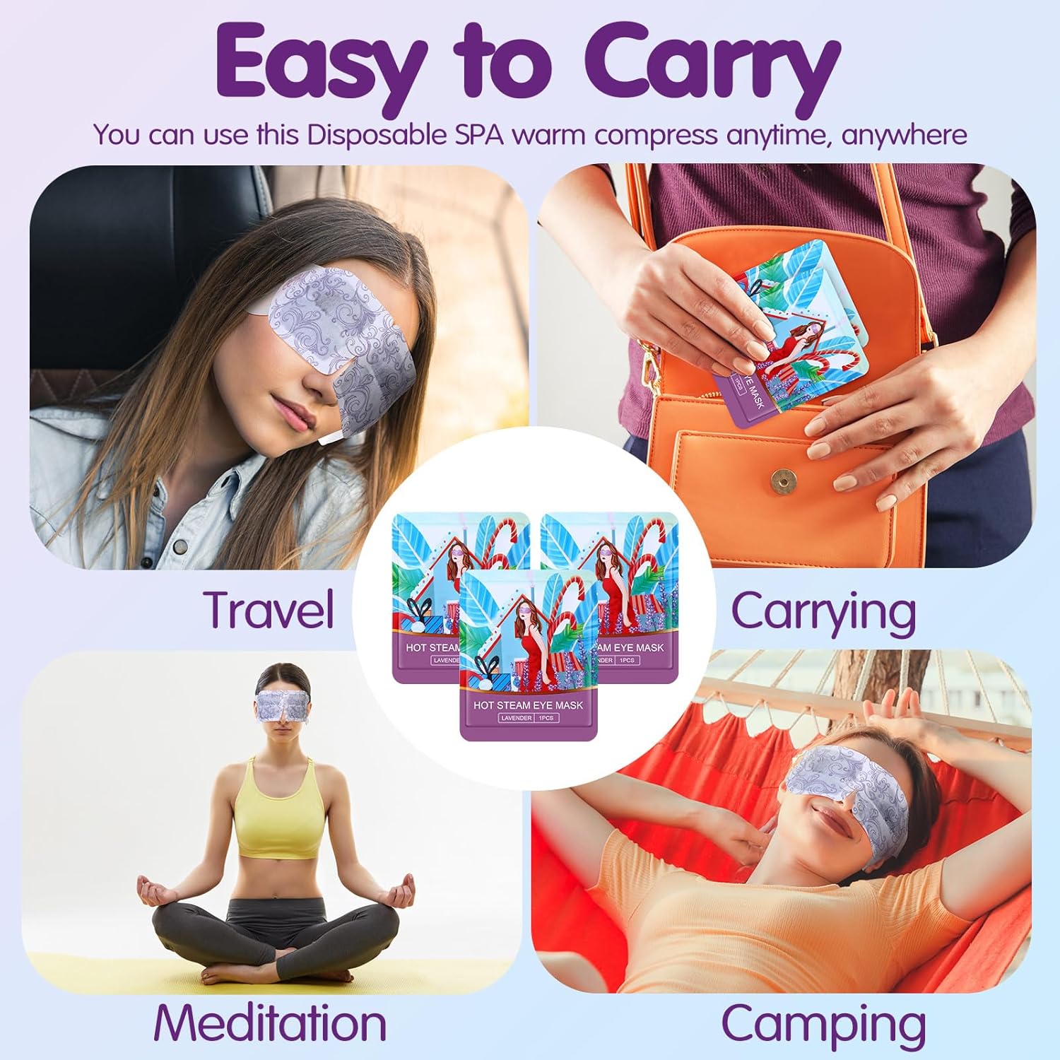 - Easy to Carry: each one of the spa eye mask bulk is self packing and sealed tight; It's convenient to carry out; And each heated eye patch is disposable and convenient for you to carry and use when going out; You can use the steam eye mask anytime and anywhere to relieve your eye pressure and enjoy a relaxing moment