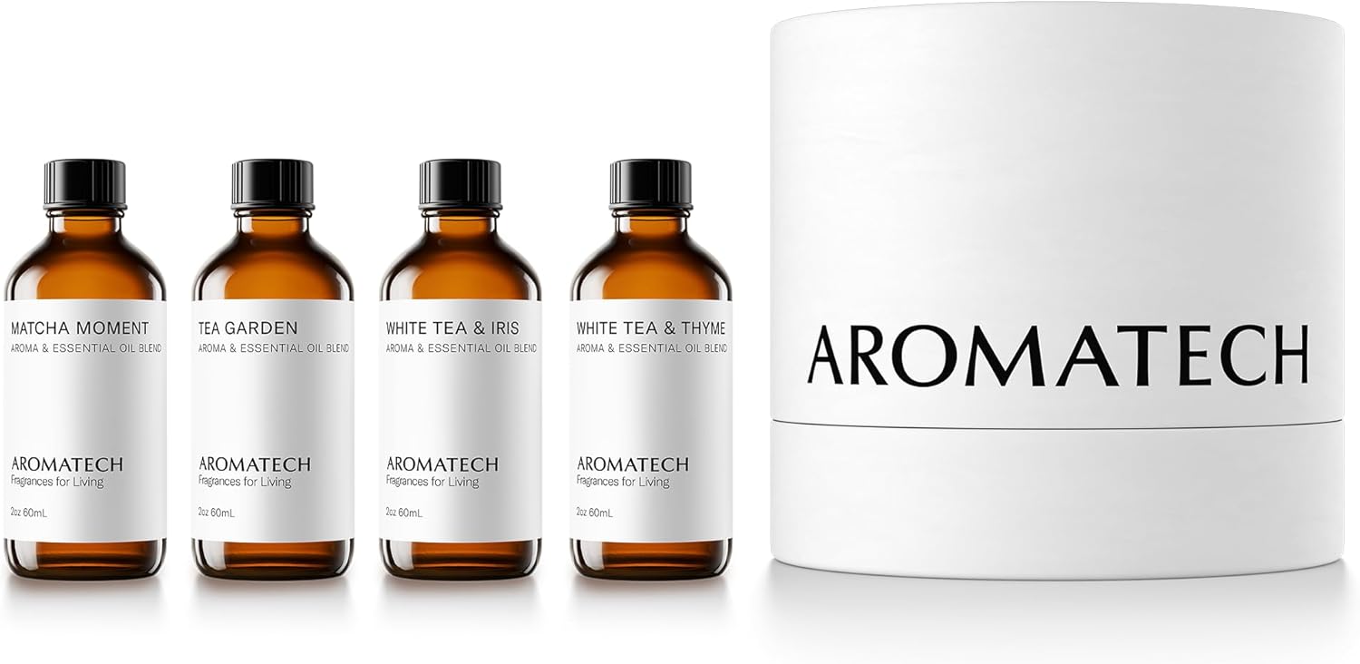 AromaTech The Tea Collection Set | Gift Set of Aroma Diffuser Essential Oils Blend of Matcha Moment, Tea Garden, White Tea & Iris and White tea & Thyme - 60 Milliliter