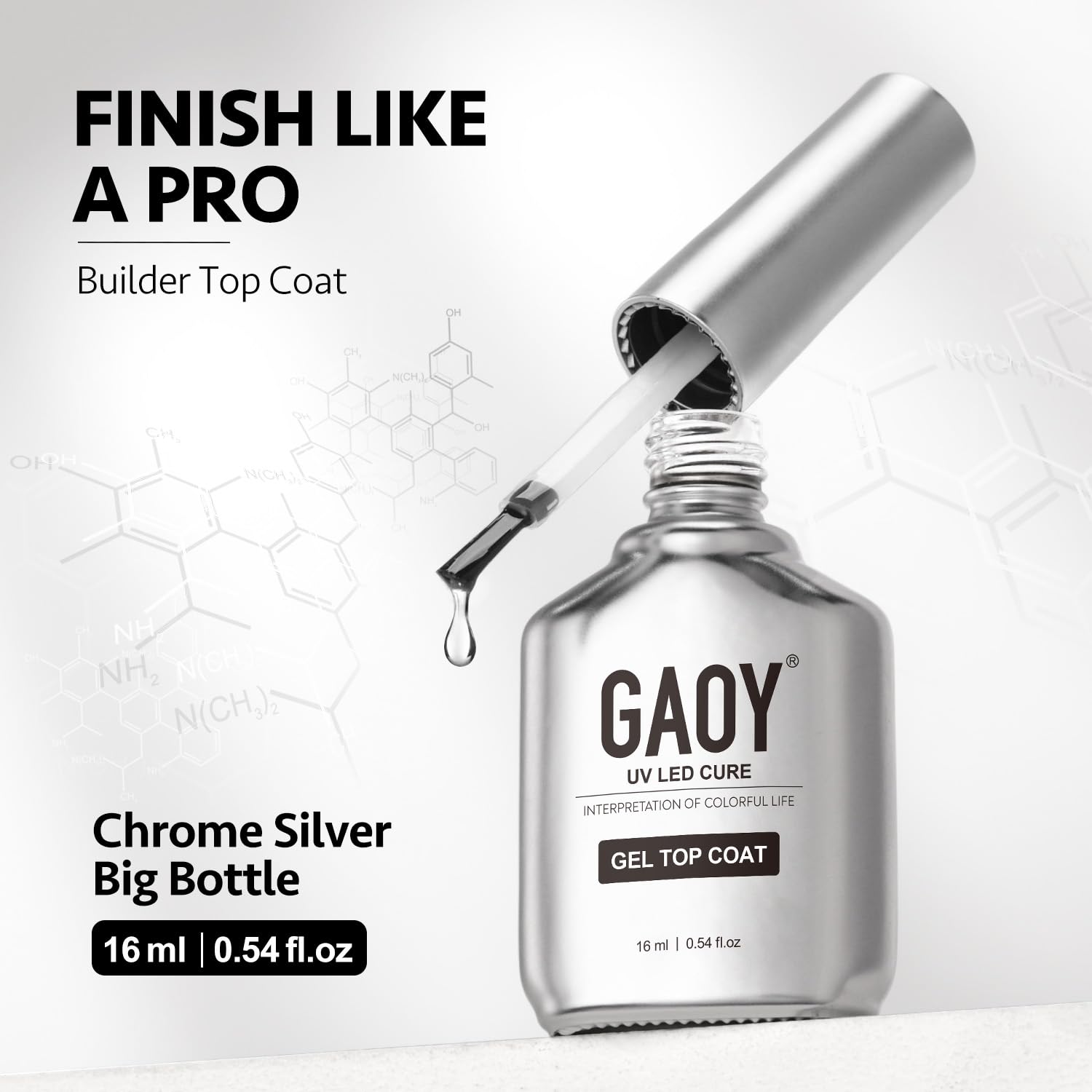- Bigger Volume: 1 Pcs 16ml large bottle crystal glossy gel top coat with brushed-stainless-steel-look chrome silver design.