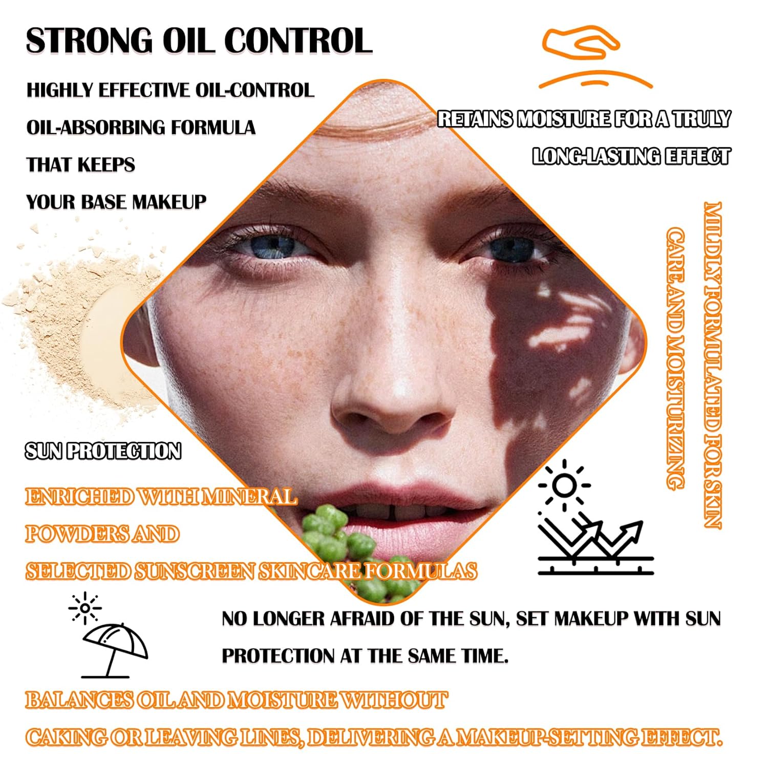 Sunscreen Setting Powder,SPF 50+ PA++++,Oil Control Waterproof Mineral Powder Sunscreen,Lightweight Long Lasting Matte Sunscreen Powder with Sunscreen Brush