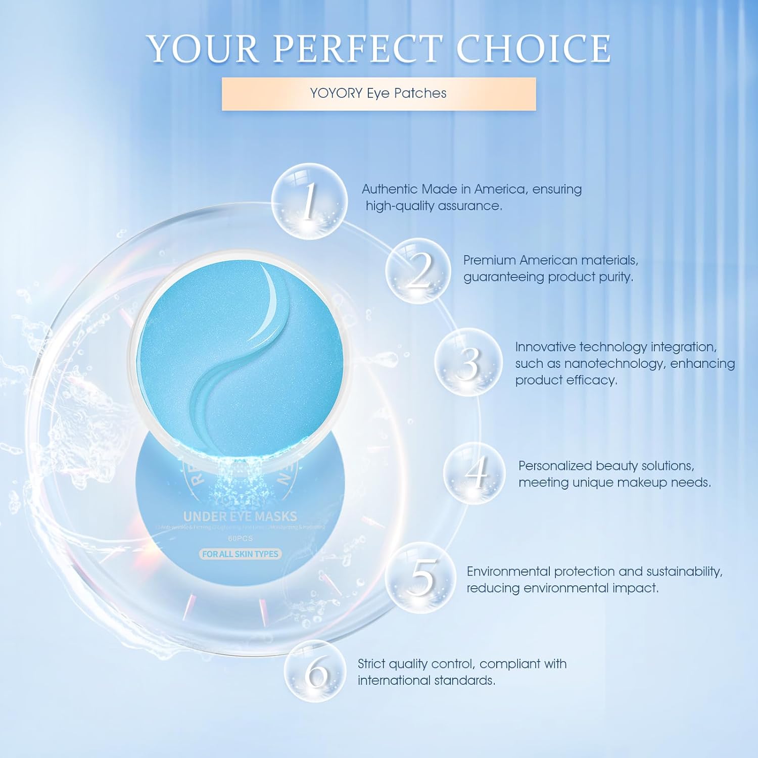 - SPECIALLY MADE UNDER EYE PATCHES FOR YOU: YOYORY blue under eye patches for dark circles and puffiness are equipped with 30 pairs of premium ingredients eye masks based on the metabolic cycle of eye skin. Add to your eye care regimen for your perfect experience, bringing newfound confidence.