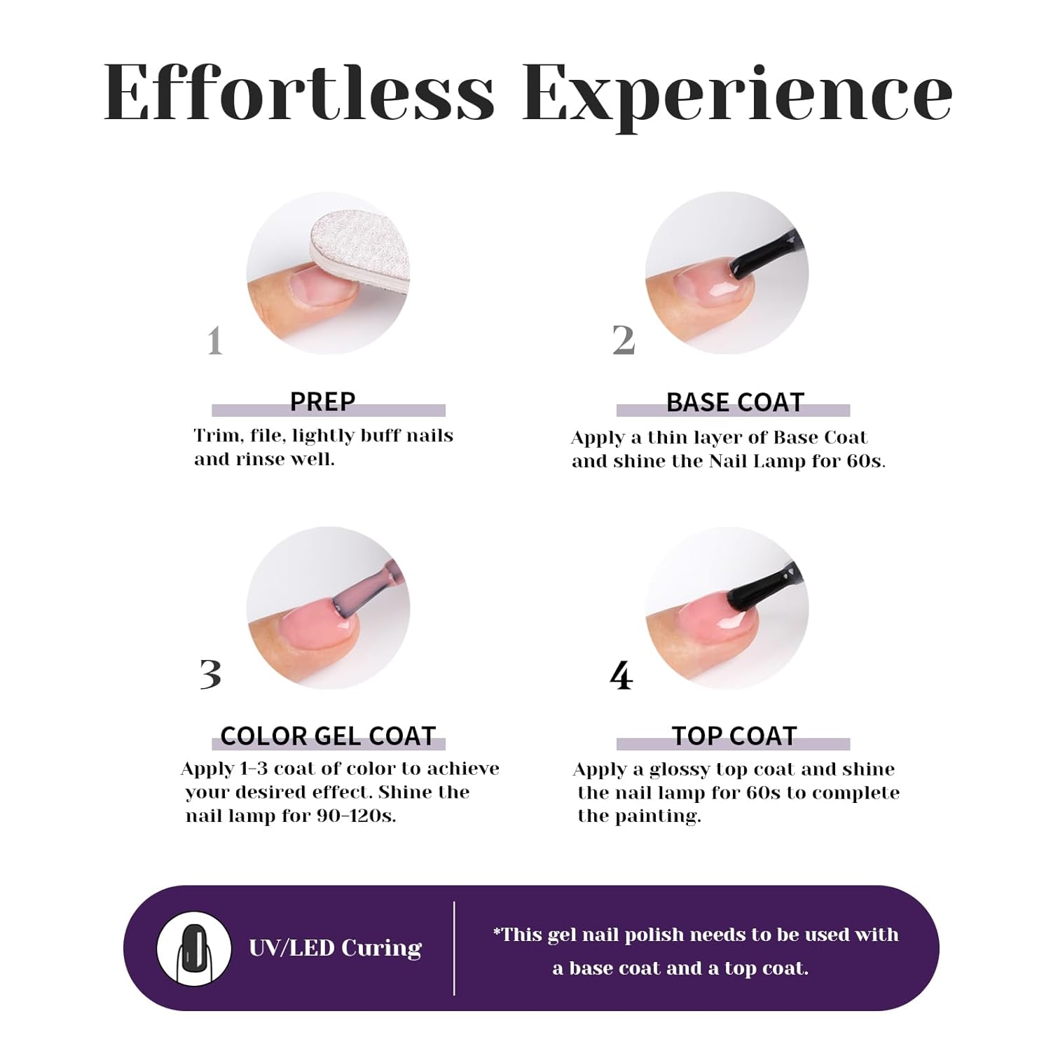 - Easy application: The smooth and creamy texture of this sparkly deep pueple gel nail polish makes it effortless to apply, providing even coverage and minimizing the chances of streaks or clumps.