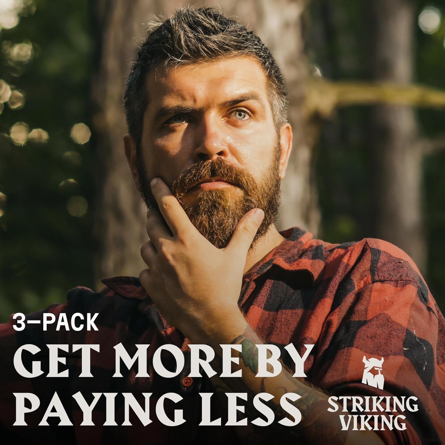 Striking Viking Beard Oil for Men - 2 Fl Oz, 3 Pack, Vanilla Scent - Naturally Derived Conditioner with Almond, Tea Tree, Argan & Jojoba Oil for Beard Growth, Softening & Moisturizing