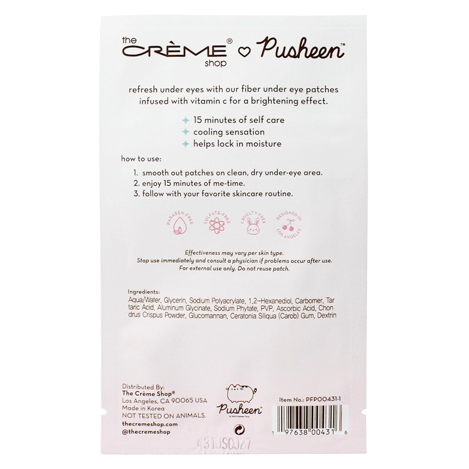 The Crème Shop X PUSHEEN KLEAN BEAUTY™ Fiber Under Eye Patches | Vitamin C Infused for Brightening | Cooling & Moisturizing | Set of 3 Pairs | Vegan & Cruelty-Free (Set of 3)