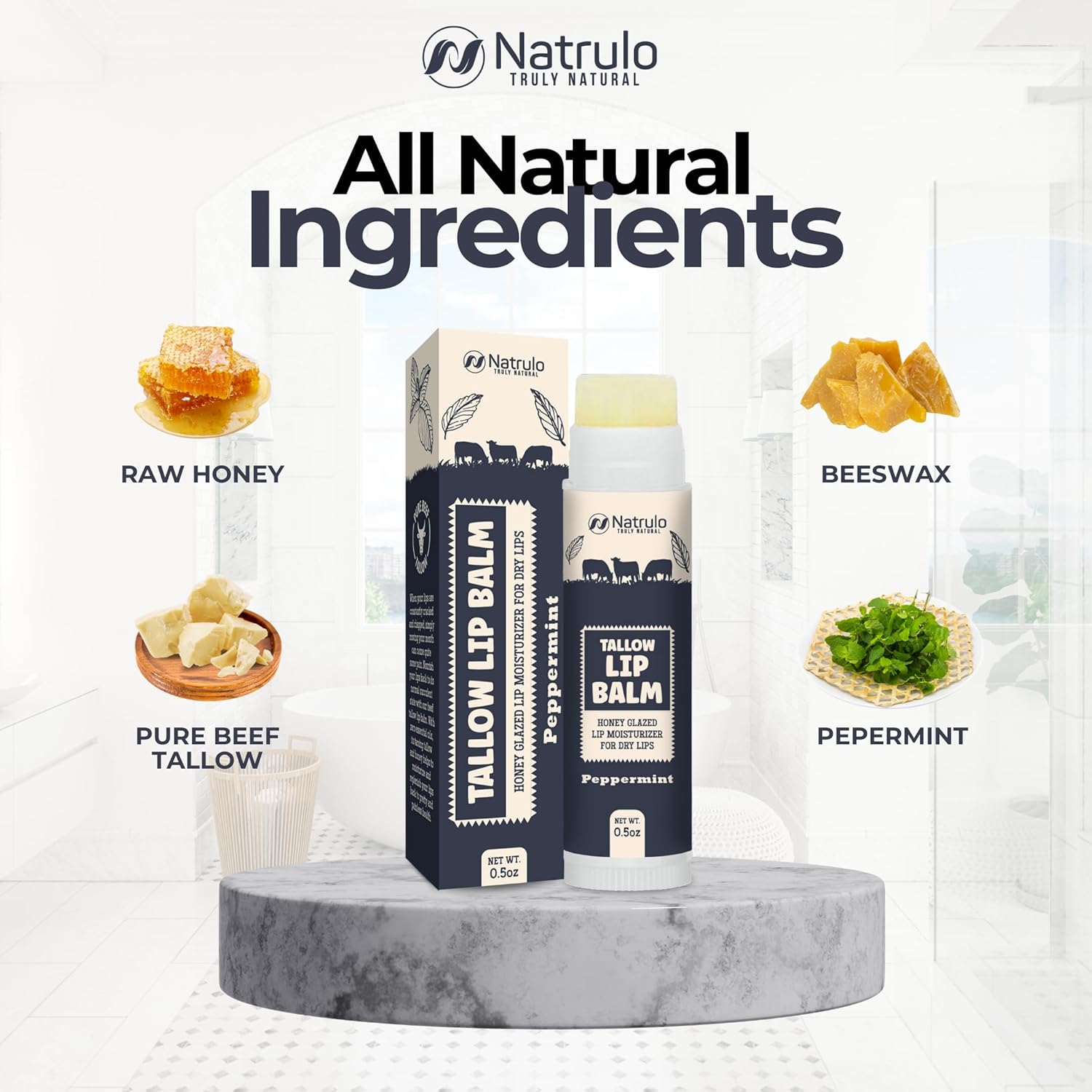 - INTENSELY HYDRATING FORMULA: Immerse your lips in moisture with our grass-fed organic beef tallow lip balm with peppermint flavor. Crafted with natural fats, akin to those in human skin, it maintains your lips' moisture barrier for enduring hydration and velvety softness.