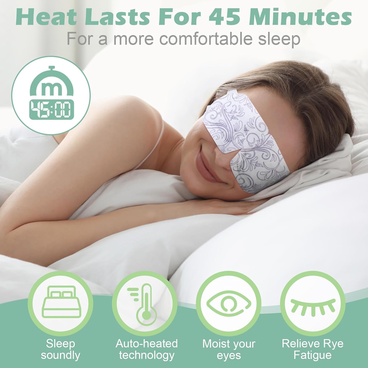 - Self Heating for a Long Time: these heated eye mask can get warm automatically and stay at a temperature at of 107.6 degrees Fahrenheit/ 42 degrees Celsius for about 40 minutes; No microwave or electricity is required, convenient to use
