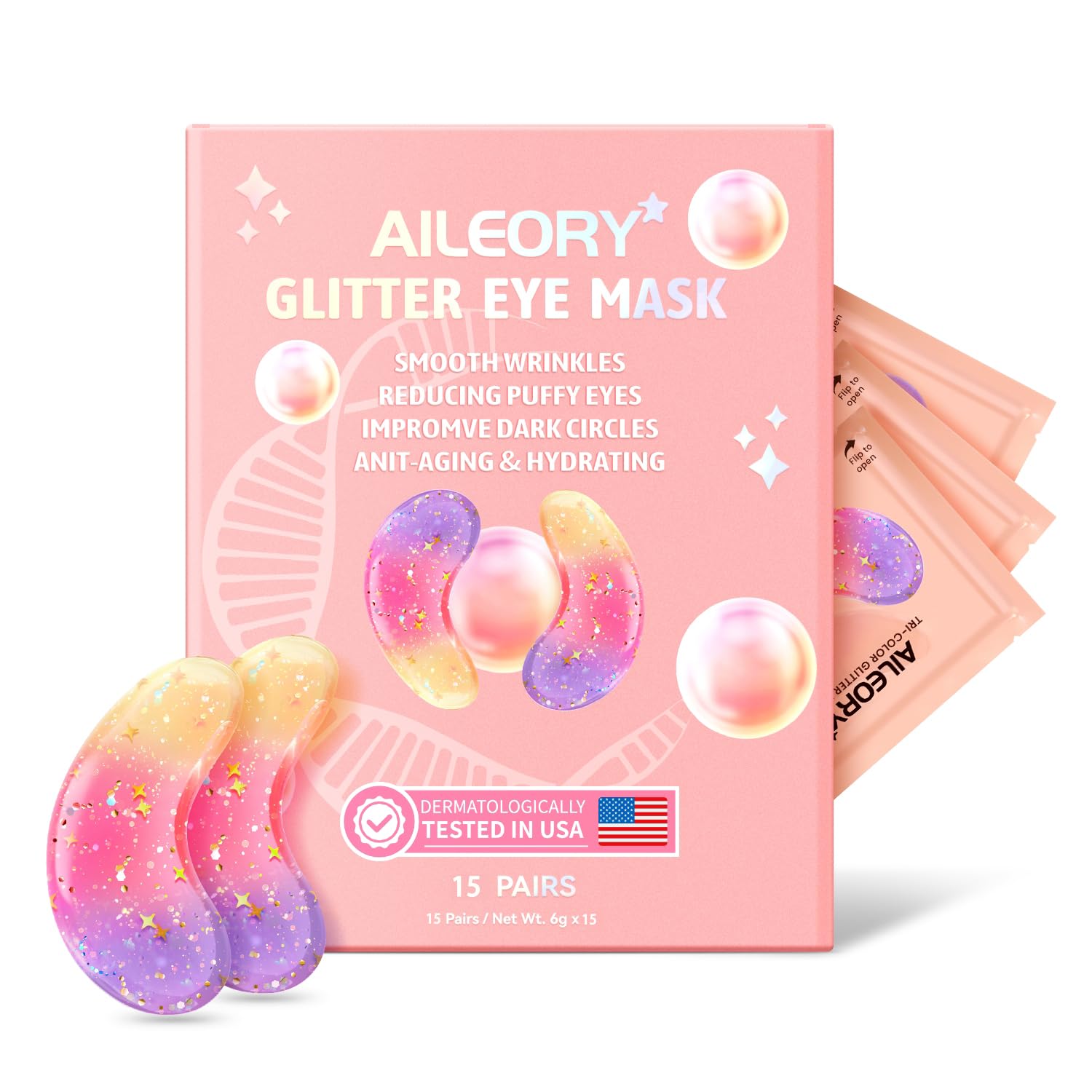 Under Eye Patches (24 Pairs)-New Tri-color Glitter Eye Gel Pads for Dark Circles Puffy Eyes,Under eye Bags,Wrinkles|Natural Collagen Under Eye Mask Patches for Women Teen