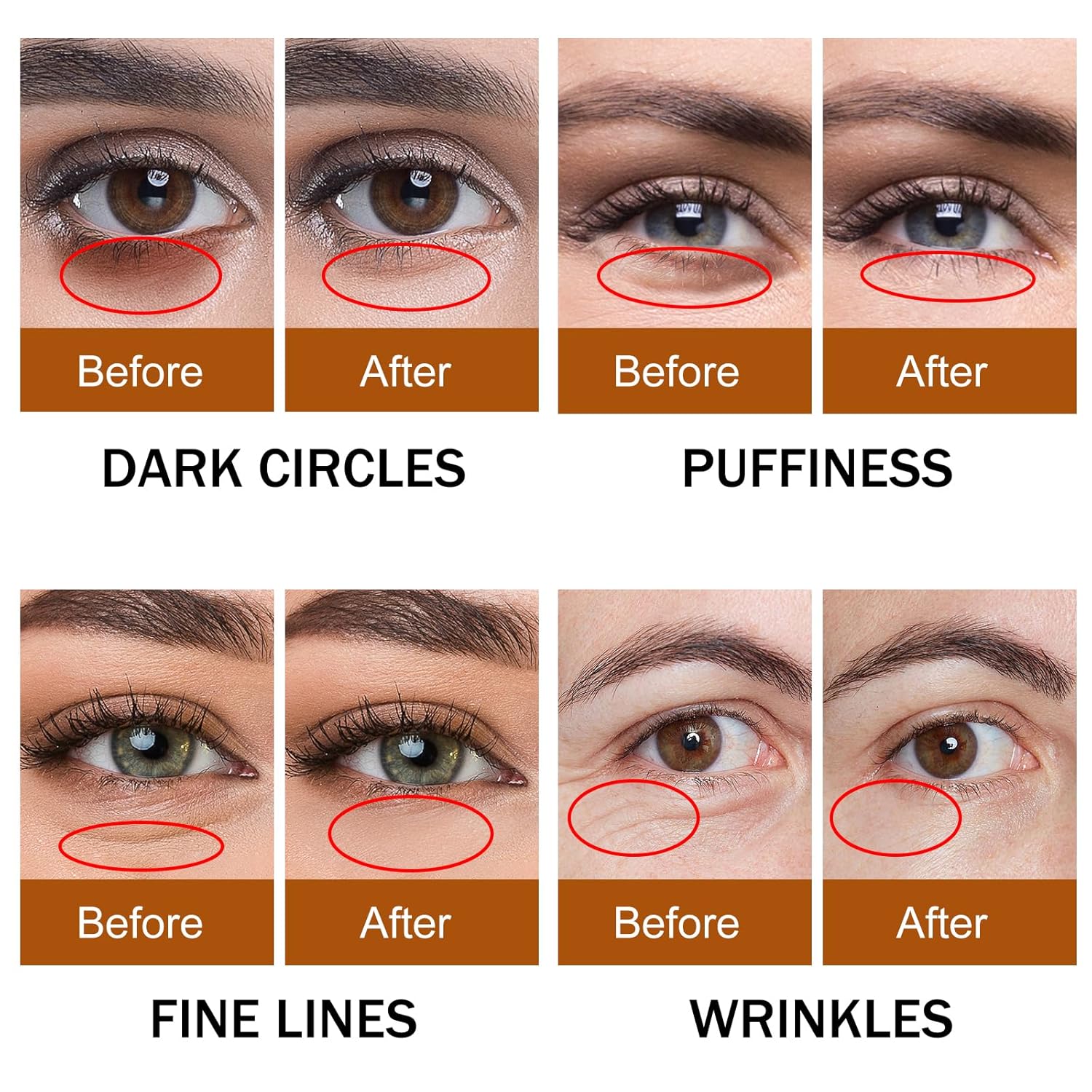 - 【DARK CIRCLES UNDER EYE TREATMENT】 Annoying eye wrinkles,puffiness,dark circles,dry and fine lines? Our caffeine eye SERUM also contains niacinamide, acetyl hexapeptide-8 and vitamin e to help smooth the appearance of fine lines,eye puffiness reducer and dark circles effectively,deliver nutrients for hydration, and energize the delicate skin around the eyes that will leave your eyes awake and radiant all day long.