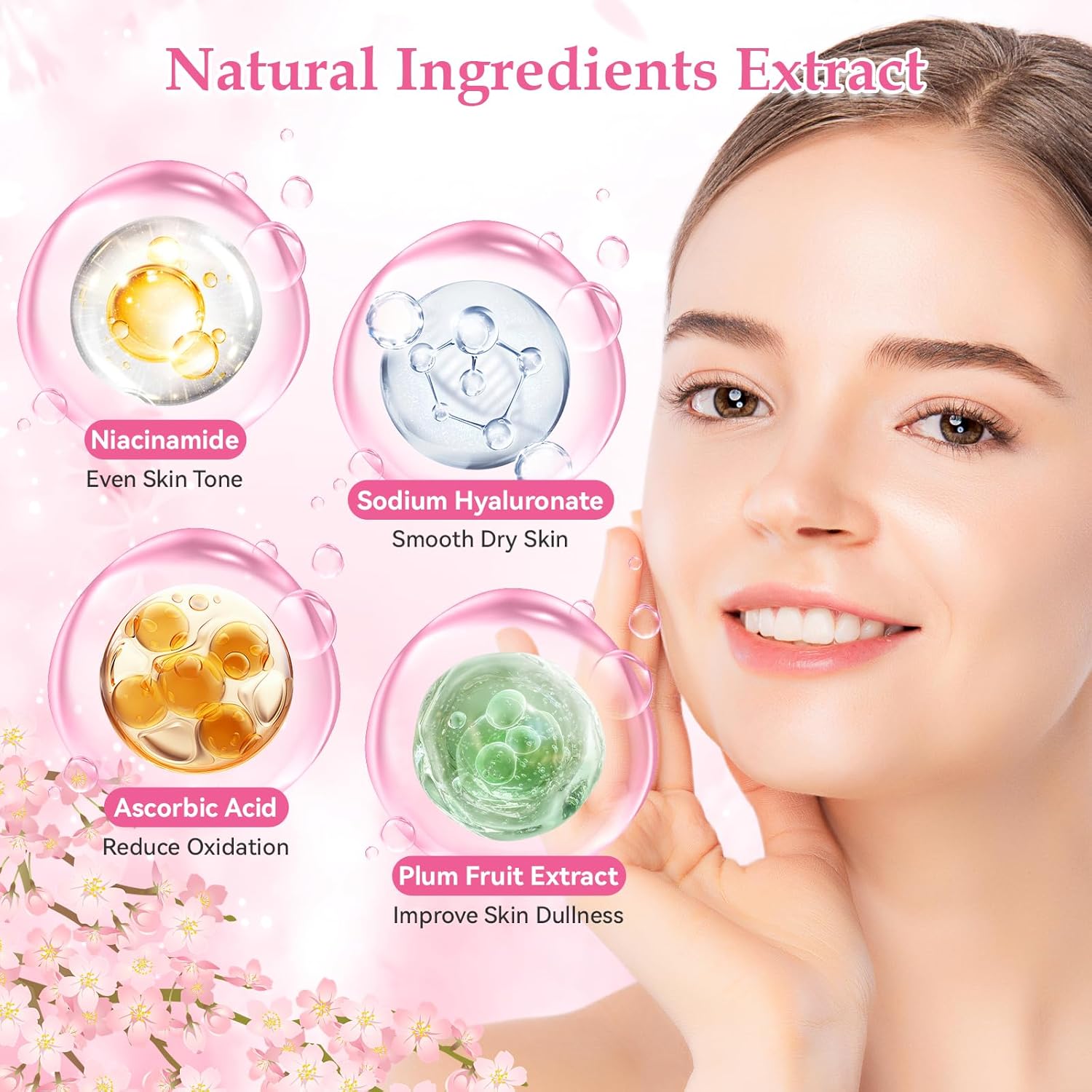- 【Natural Moisturizing Ingredients】Our skin care sets & kits are extract natural Cherry Blossom extract and a variety of mild skin care ingredients, which can penetrate deep into the bottom layer of the skin, continuously replenish moisture to the skin, to achieve long-lasting moisturizing skin care.