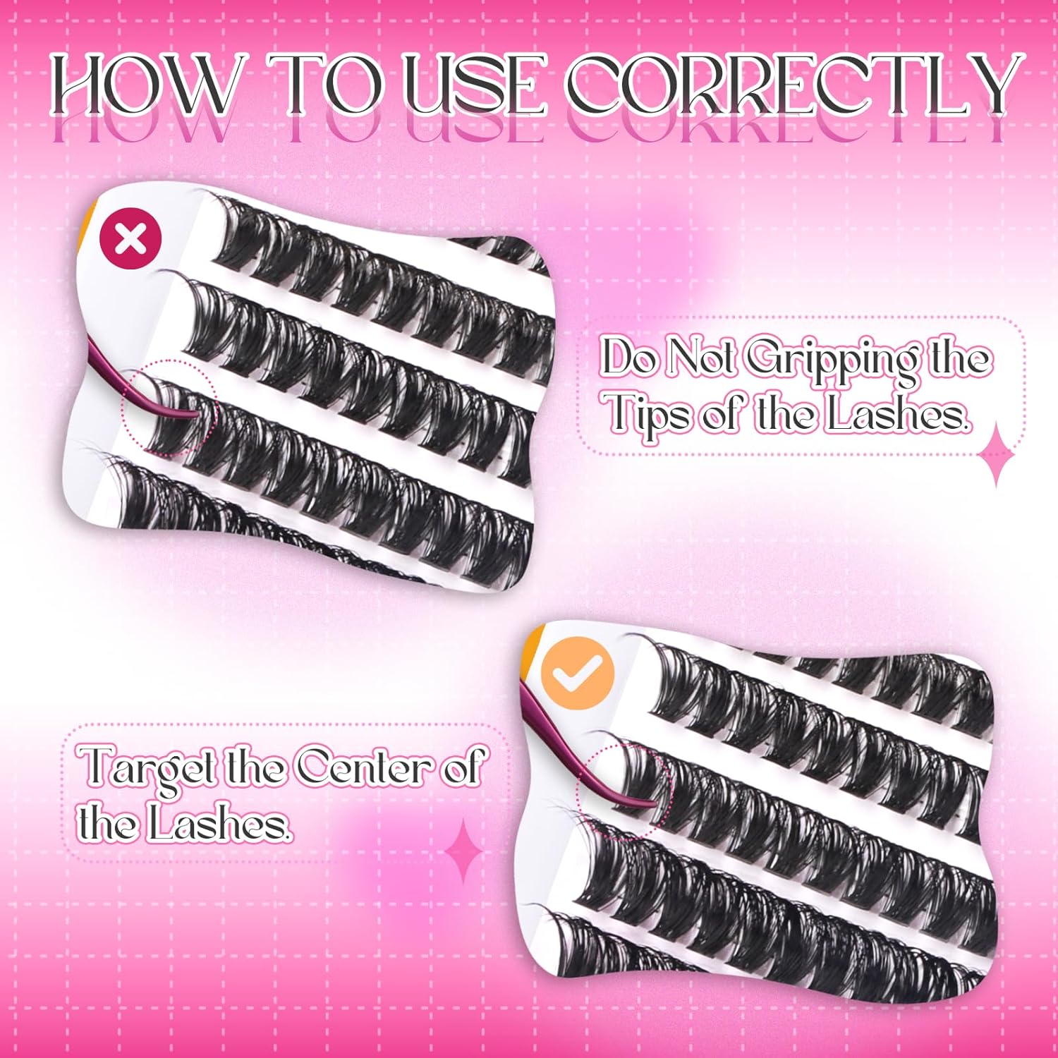 - DIY individual clusters at home: Step 1: Gently curl your lashes. Step 2: Pick up the lash clusters with lash tweezer. Step 3: Apply cluater lash glue. Step 4: Wear cluster lashes according to your preference.