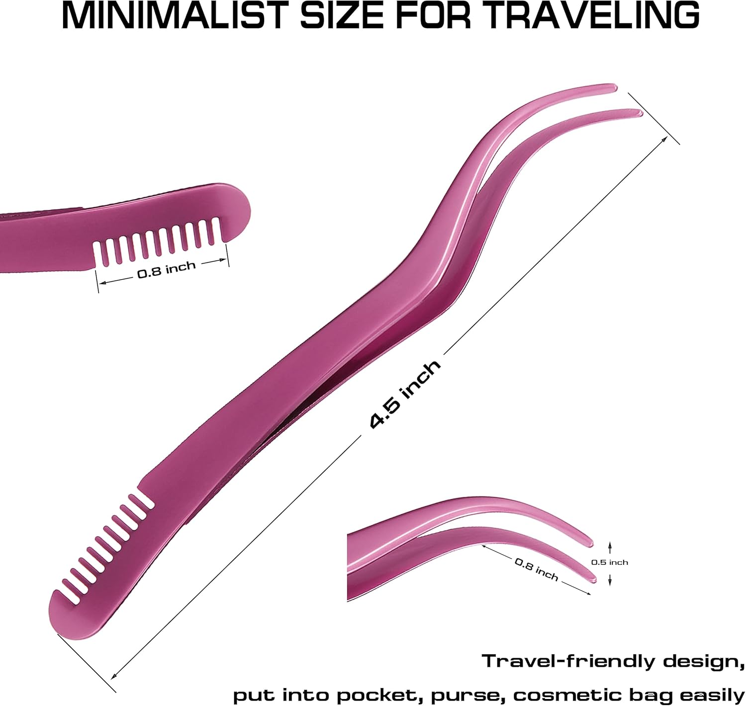 2 in 1 Lash Tweezer with Comb, Stainless Steel Elbow Tweezers, Eyelash Extension, Precise Eyebrow Tweezers Tool, Lashes Tweezer Applicator for DIY Applying False Eyelashes Clusters, Rose