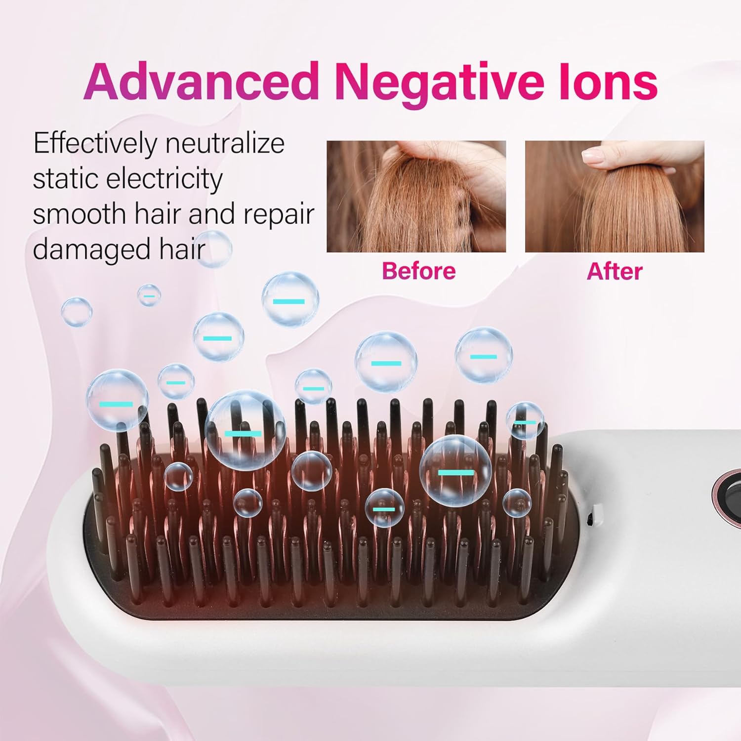Rechargeable Hot Hair Brush Straightener Heat Pressing Combs Ceramic Electric Straightening Comb, Anti Burn for Natural Black Hair Beard Wigs Holiday Gifts