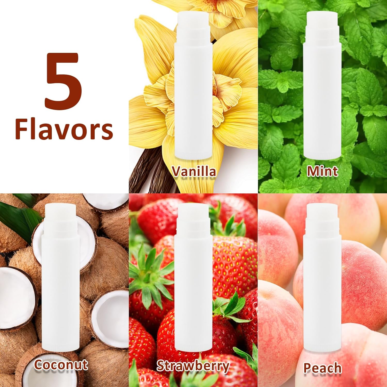 - ✅ 【5 Flavors Lip Balm】Our lip balm bulk contains 200 pack in 5 flavors -Peach, Mint, Strawberry, Coconut, and Vanilla. Labels are built into the box to help distinguish flavors