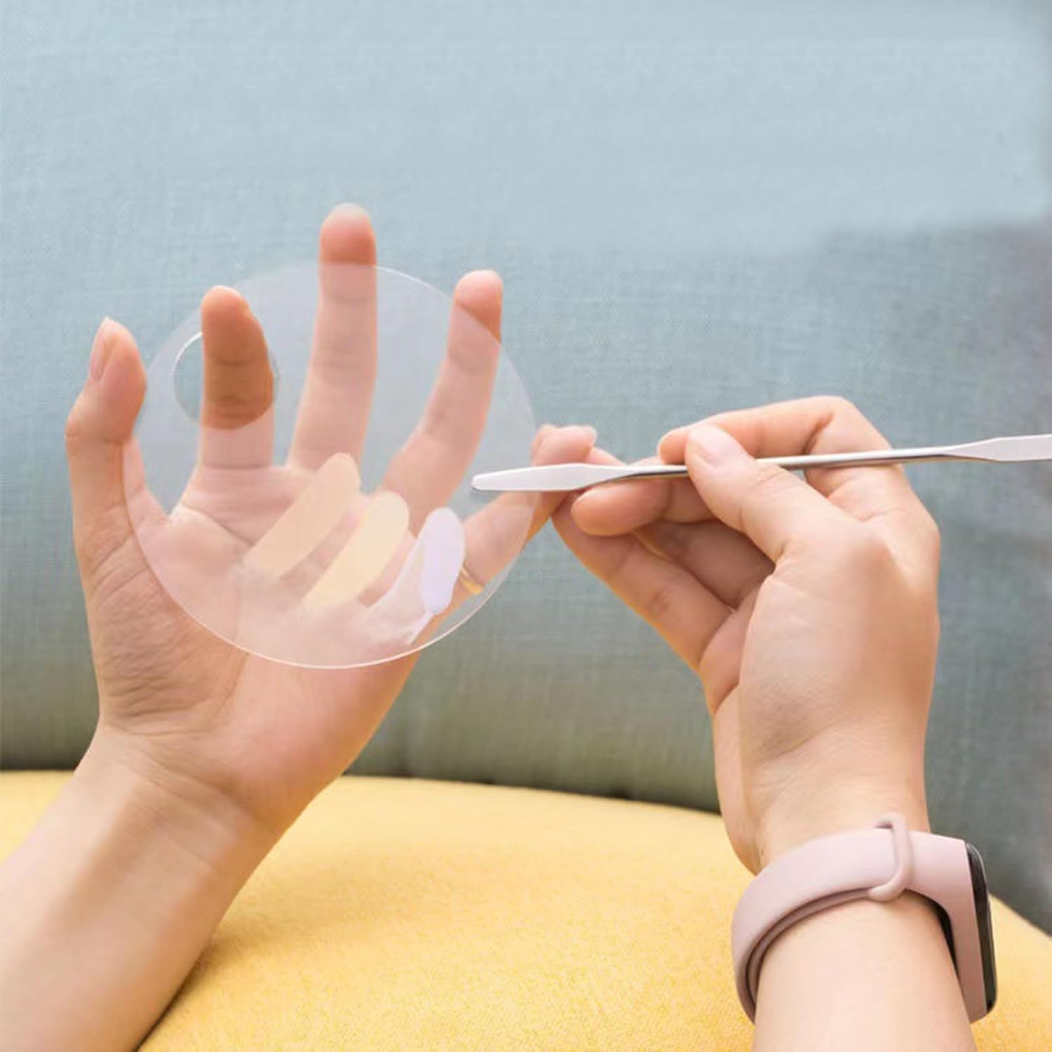- Material: our makeup palettes are made of high-quality acrylic with smooth texture, the cosmetic spatula is made of stainless steel, great for getting product out of the container, easy to clean. This makeup mixing palette is suitable for a variety of color cosmetics use, a good tool to create your own beauty and fashion.