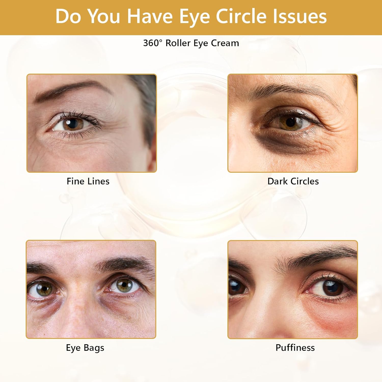 Snail Peptide Eye Cream For Moisturizing, Snail Mucin Eye Cream With Niacinamide, Hyaluronic Acid, Snail Eye Cream For Dark Circles, with 360° Massage Ball Reduce Wrinkles and Fine Lines