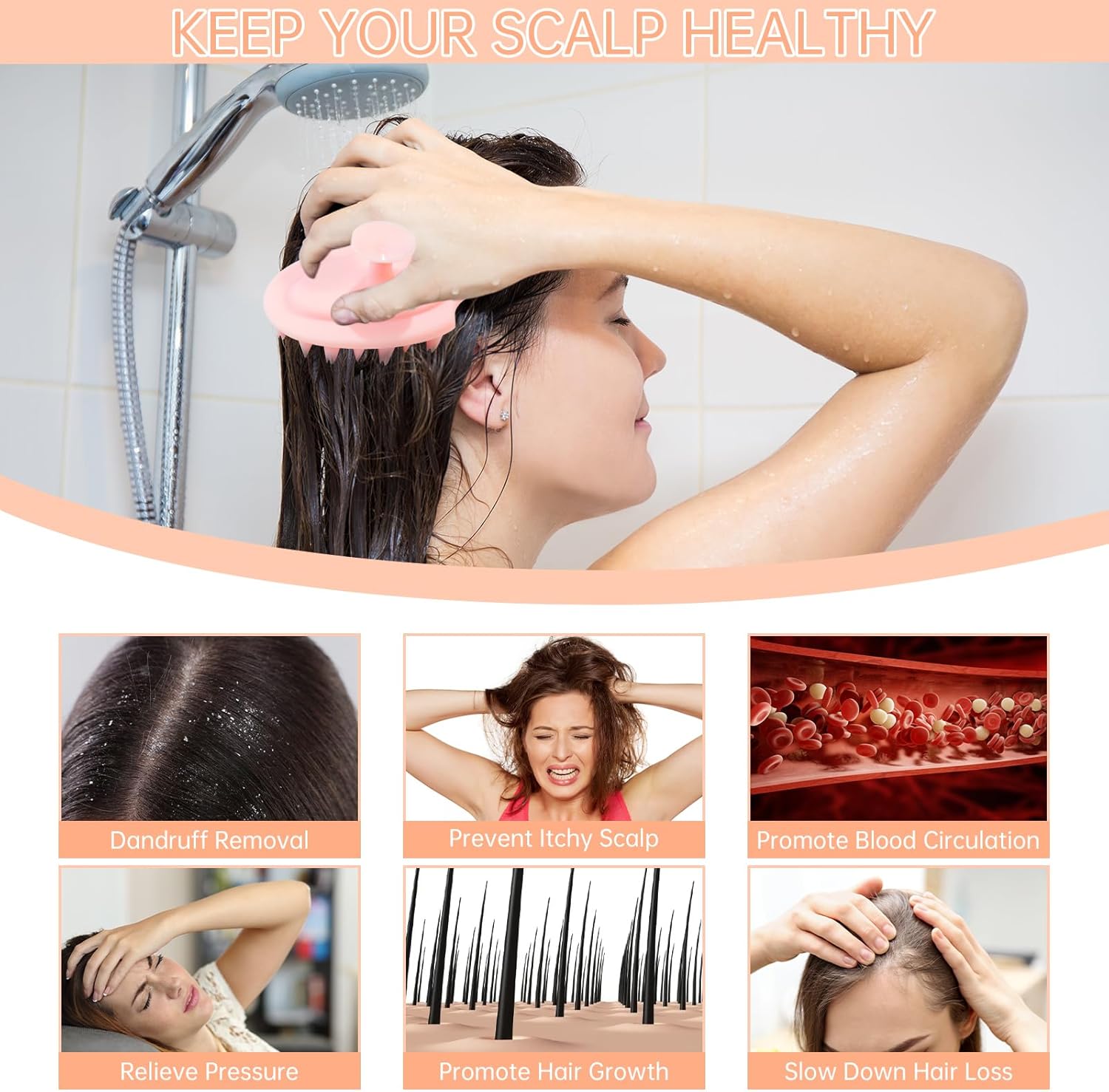 DUAIU Scalp Massager Shampoo Brush with Head Scalp Comb, Silicone Scalp Scrubber Gua Sha Comb for Women Men Hair Growth Dandruff Removal, Head Massage Brush Comb Set Gift, Pink