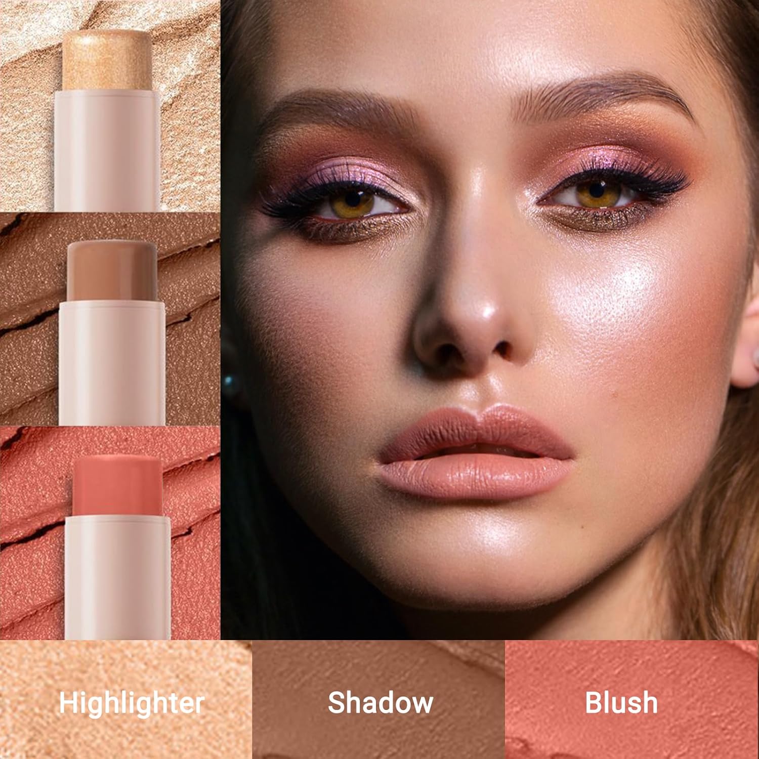 - Contour Makeup Kit - This contour stick kit comes fully equipped, including a contour stick, highlighter stick, blush stick, and a premium soft contour brush for blending stick creams.