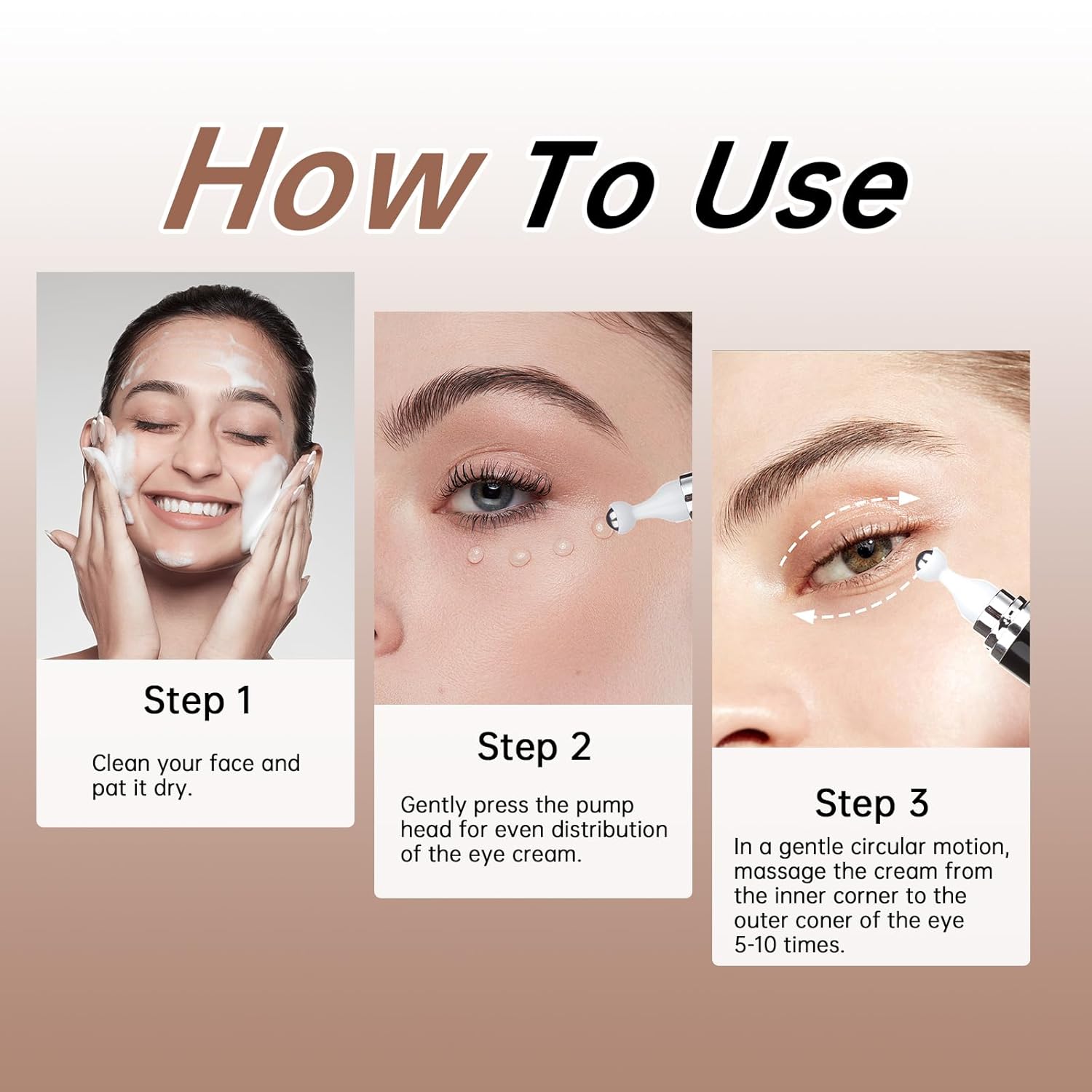 Caffeine 5% Eye Cream for Dark Circles, Under Eye Cream for Puffiness, Bags & Wrinkles, 2 PCS Anti Aging Eye Serum with Under Eye Roller, Reduces Fine Lines & Moisturize Skin.