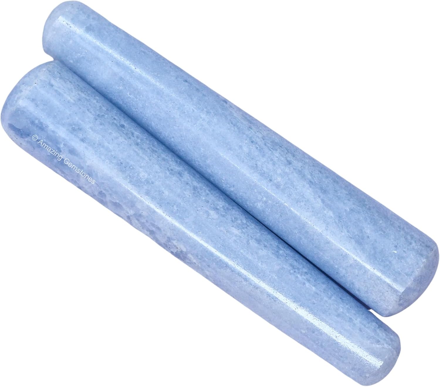 Amazing Gemstone Blue Calcite Crystal Wand Massage Stick - Pelvic Wand Gua Sha for Adults - Crystals and Healing Stones Massage Wands for Adults Gifts (Smooth)