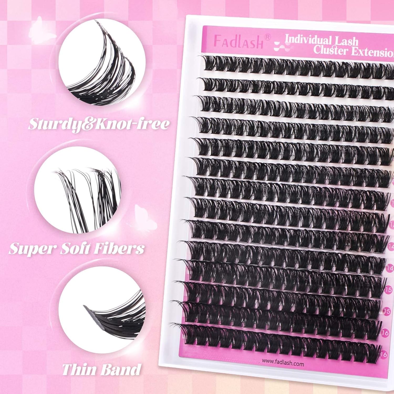 - 【High Quality Lashes】:Cluster lashes are made of premium PBT silk fiber, which is light and soft without knots, Easy to pick up and comfortable to wear, comfortable and light to wear, fast wear to save time,easily create any eyelash extension style of your makeup suitable for any scene.