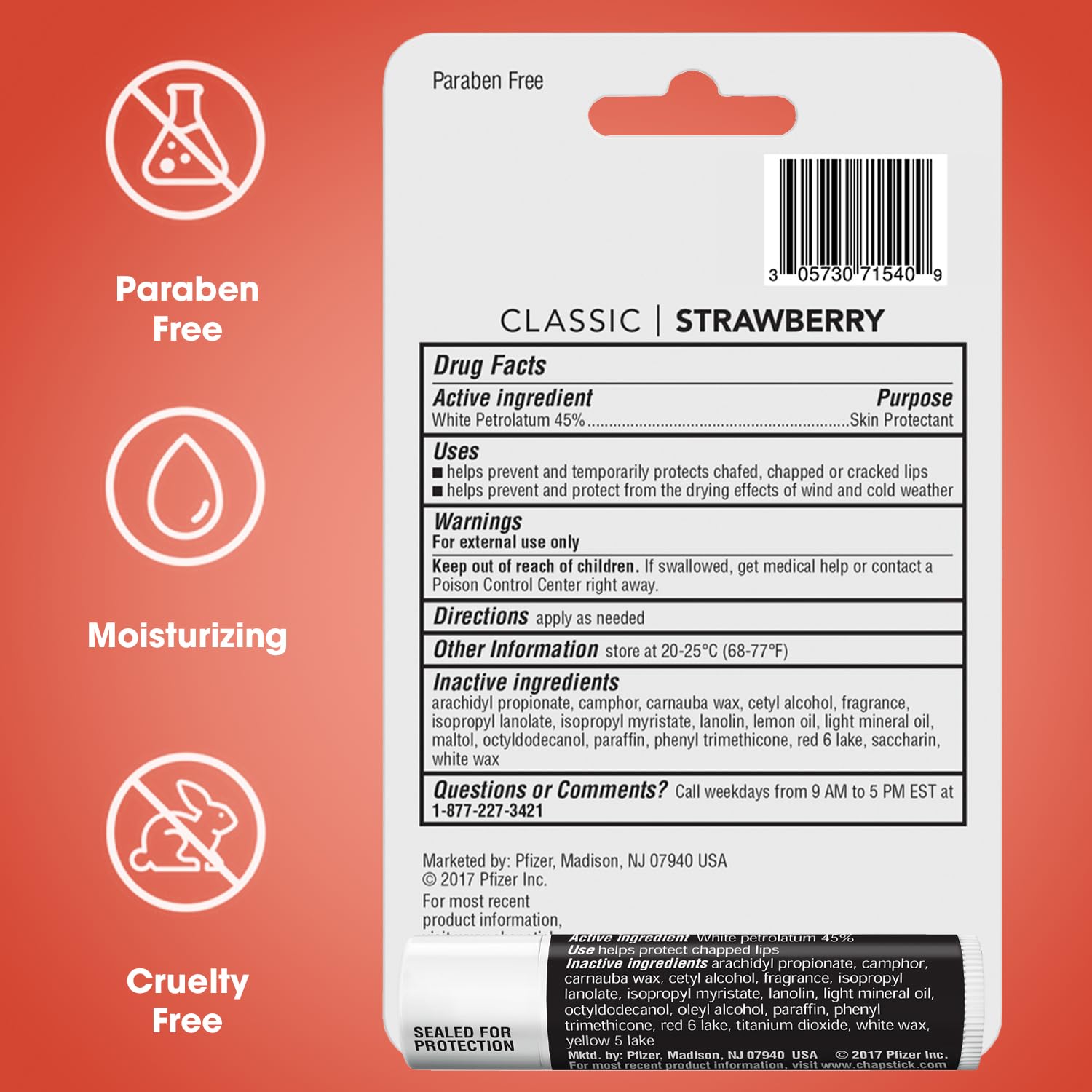 - HYDRATING LIP TREATMENT: For soft and protected lips, this bundle features 4 tubes of Strawberry Chapstick, a sheer pink-tinted lip balm, plus 1 tube of the Classic Original ChapStick.