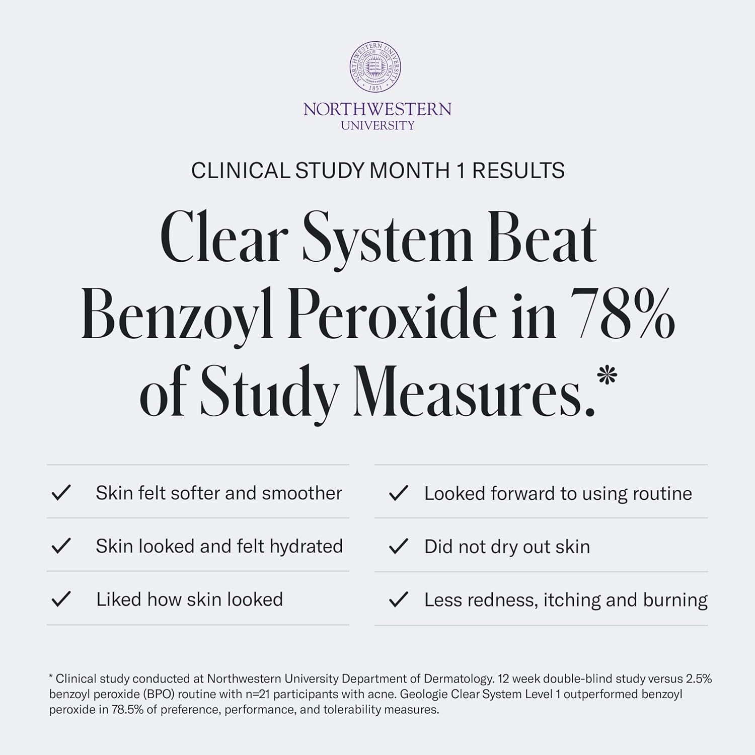 Geologie Clear System | 3-Step Acne Treatment & Skincare Set | Clears Skin Fast | Acne Gel Cleanser, SPF15 Day Cream & .2% Retinol Face Cream For Men & Women | Month 2 / Level 2