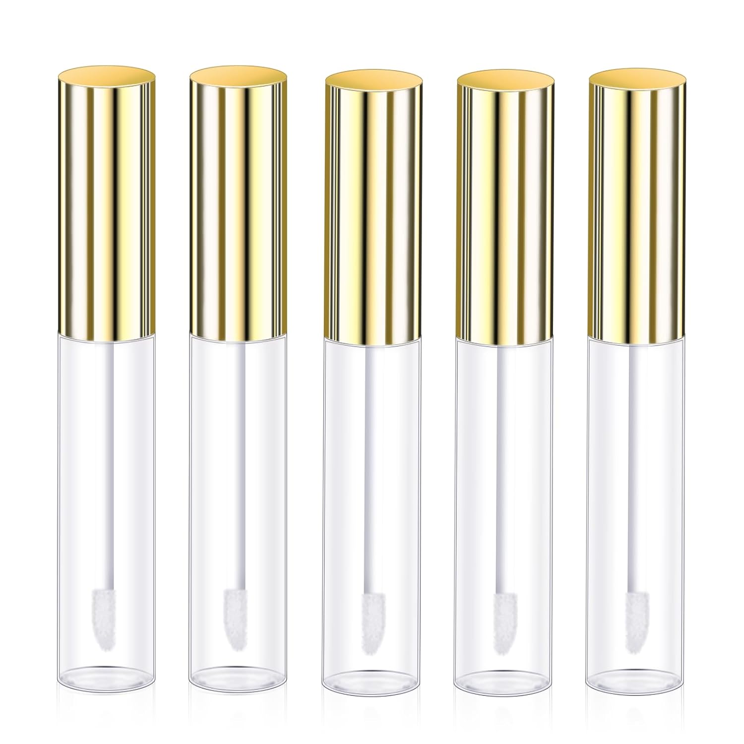 Molain 5PCS Empty Lip Gloss Tubes, 10ml Refillable Cosmetic Containers Bottles Lip Balm Bottles with Wand Concealer for Lipstick Samples, Lip Balms(Gold tube cap)