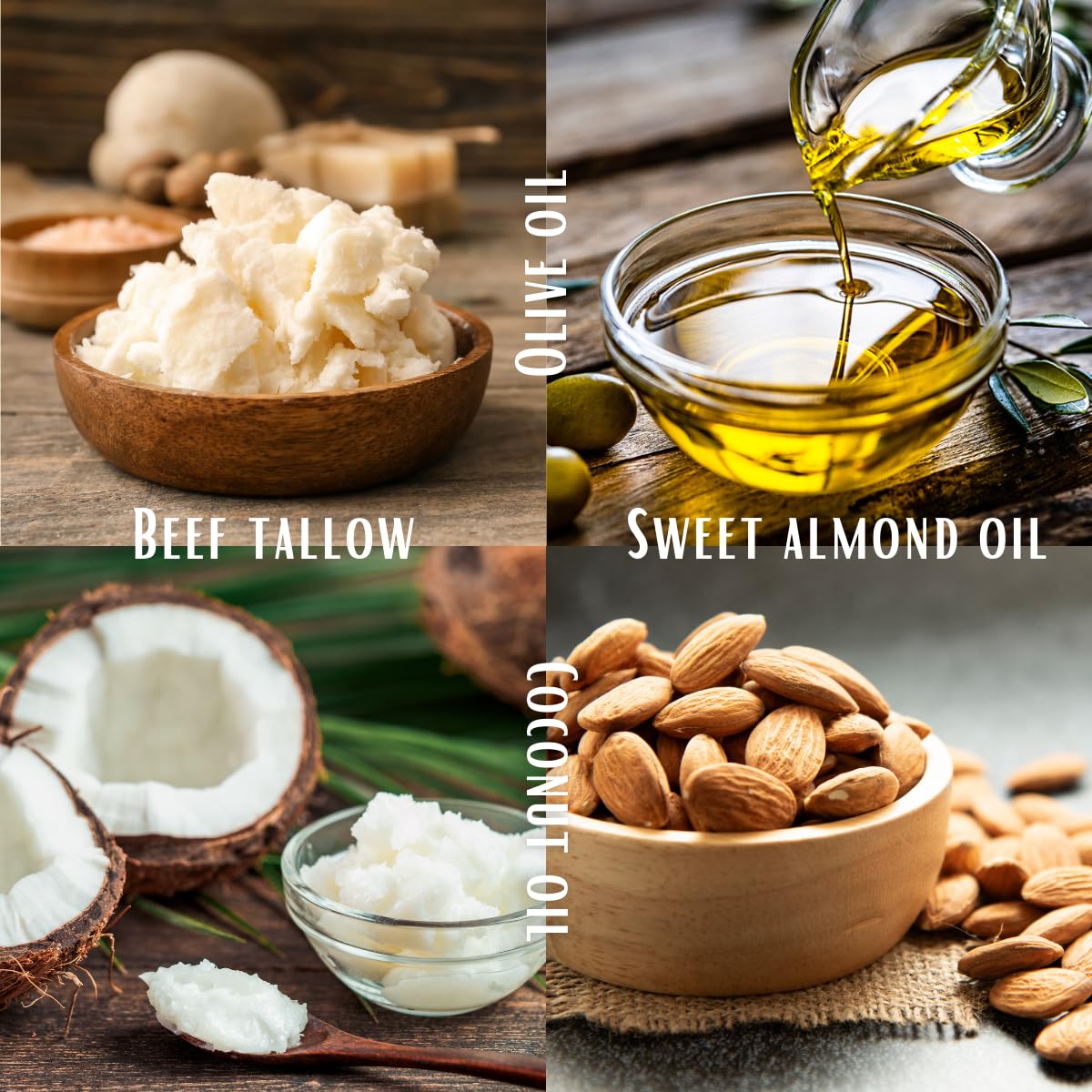 - PREMIUM INGREDIENTS: Each bar is made with a thoughtfully curated blend of ingredients, including beef tallow, which is rich in essential fatty acids that deeply moisturize and pamper your skin.