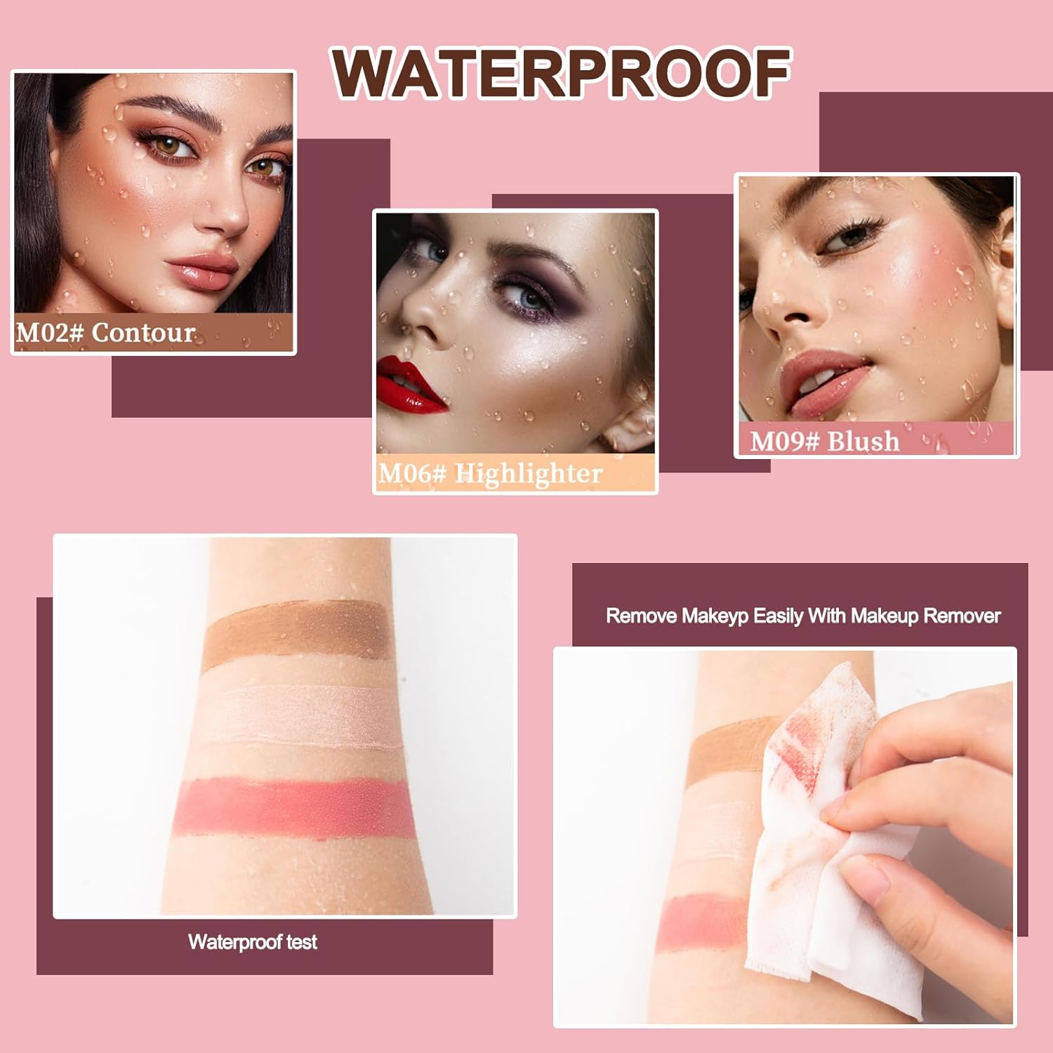 - 【3-in-1 Makeup Kit Contour Makeup Kit】Our 3 Pcs contour stick makeup kit, shades with blush stick, highlighter stick and bronzer contour stick, allowing you to make up more easily and create a perfect makeup. Our contour stick is designed for modern women, and the other end is a makeup brush, which helps you easily create a three-dimensional small face anytime, anywhere.
