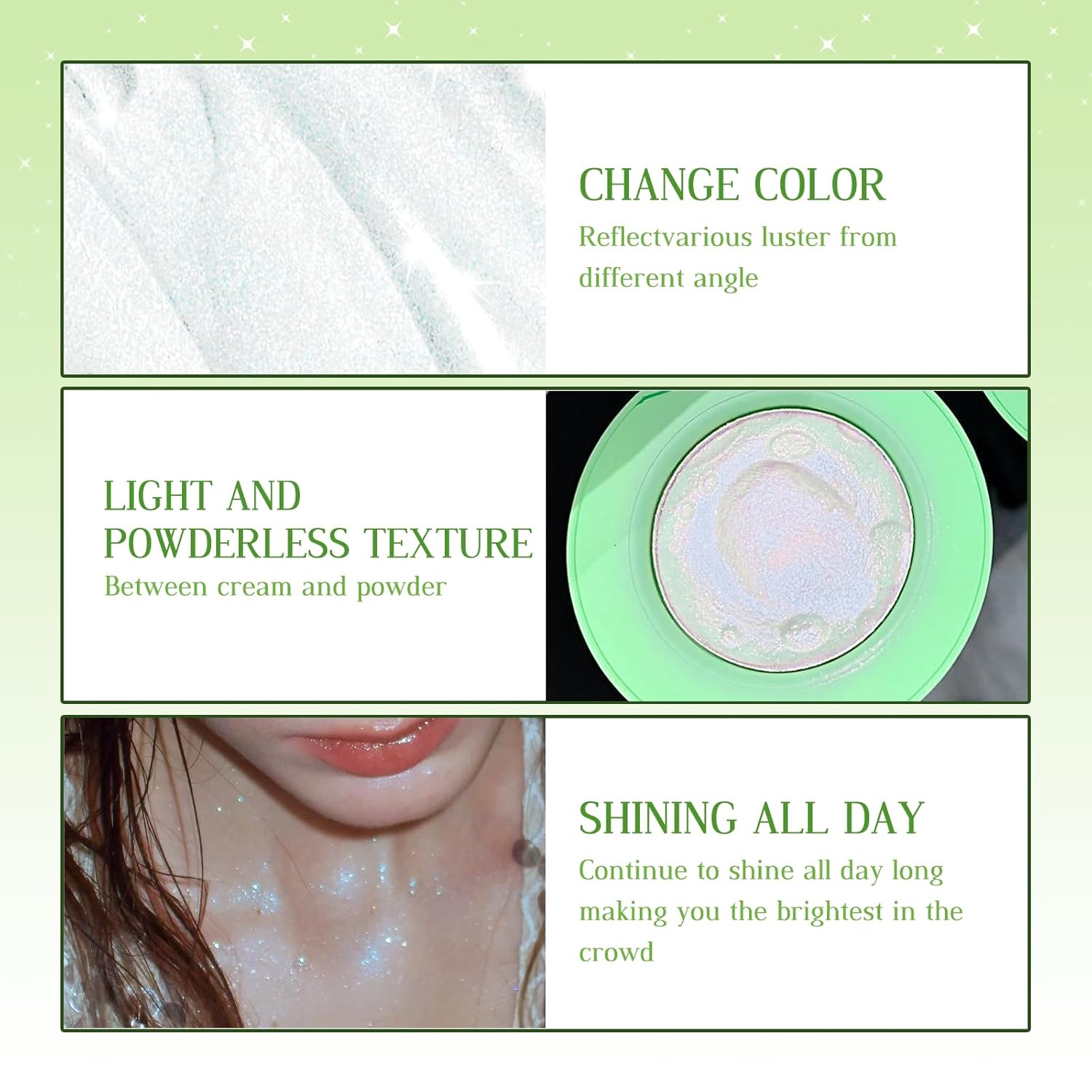 - 【Silky-Soft Texture】 The shiny highlighter palette has a texture between cream and powder that slides effortlessly and blends seamlessly with your skin. Ultrafine no granular feeling, strong color rendering, soft and smooth, accompanied by chameleon-like light appears and shiny on the beautiful skin.