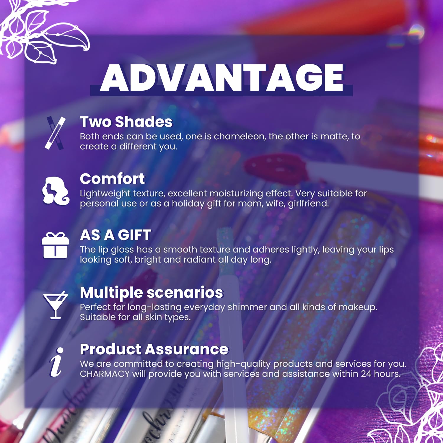 CHARMACY Multichrome Double Head Non-Stick Lip Gloss, Metallic Colourful Lip Glaze, Anti-transfer, Long Lasting Waterproof Liquid Lipstick Makeup (#05)