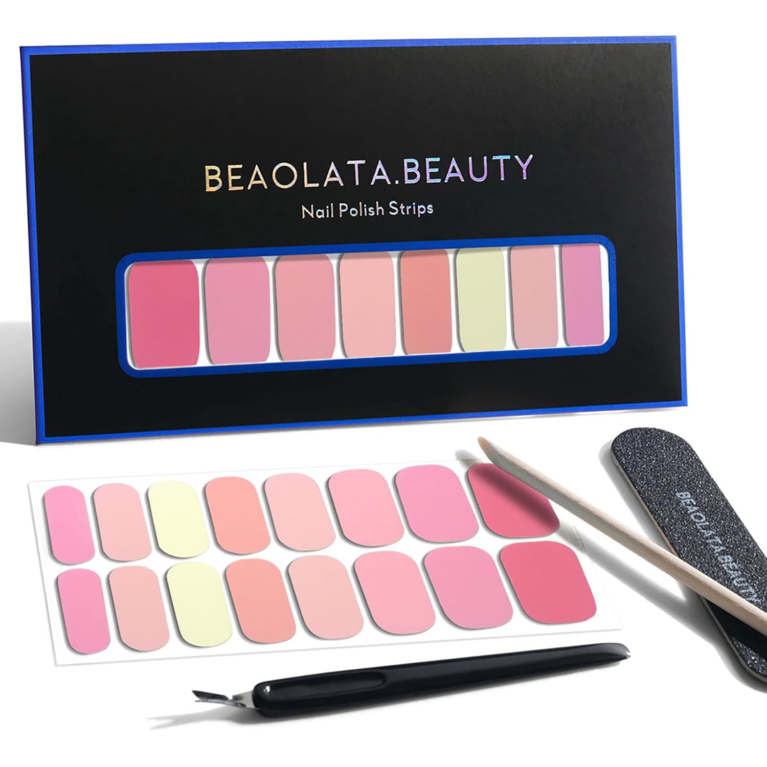 Nail Polish Strips, 32PCS Salon Quality Wraps, Long Lasting Gel Nail Stickers for Women Easy Apply& Remove (Straberry Milktea)