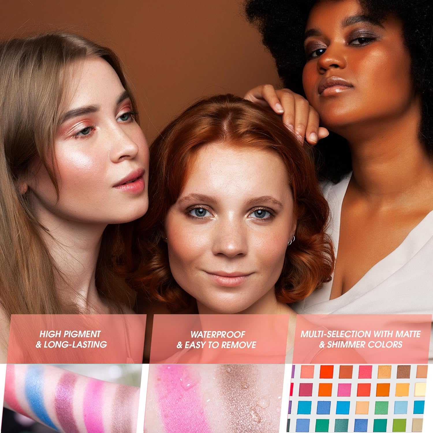 - WHAT YOU GET: 48 eye shadows, 4 shimmery lip glosses, 2 lipsticks, 2 blushes, 1 highlighter, 1 face primer, 3 lip pencils, 3 eye pencils, 7 brushes, 1 reusable train case.