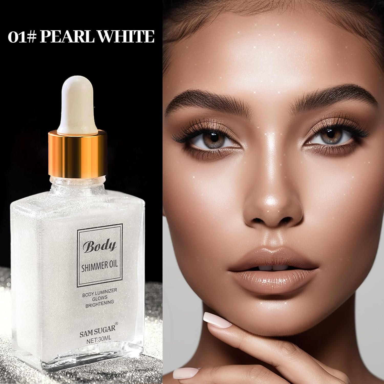 Shimmering Body Oil,Face & Body Glitter Makeup Liquid Highlighter, Moisturizing Body Glitter Dewy Highlighter,Long Lasting Highlighter Face Brighten,Liquid Face Glow Sparkles Body Oil for Women