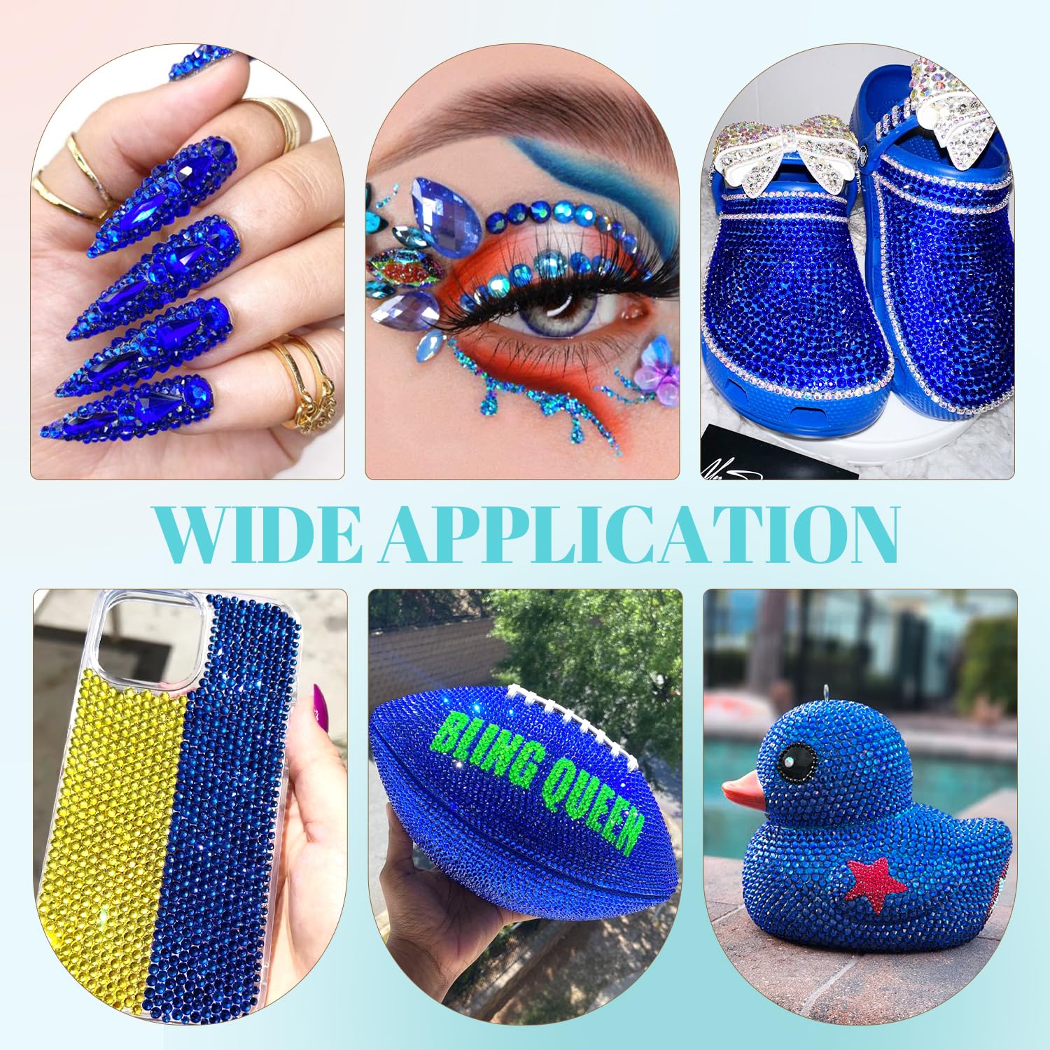 - 💎WIDE APPLICATION -- These sparkling iridescent resin crystals are perfect for creating dazzling looks. Use them for bedazzling DIY crafts like shoes, tumblers, mugs, bottles, phone cases, popsockets, scrapbooks, photo frames, diamond paintings, greeting cards, bags, glasses, guitars, keychains, hats, masks, hair clips, bracelets, wristbands, clothing, wedding dresses, and more. Apply it to what you want to bling!