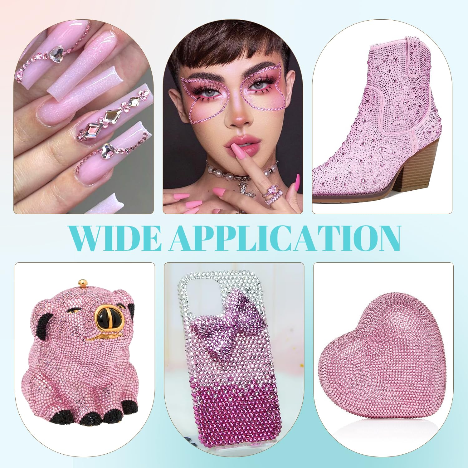 - 💎WIDE APPLICATION -- These sparkling iridescent resin crystals are perfect for creating dazzling looks. Use them for bedazzling DIY crafts like shoes, tumblers, mugs, bottles, phone cases, popsockets, scrapbooks, photo frames, diamond paintings, greeting cards, bags, glasses, guitars, keychains, hats, masks, hair clips, bracelets, wristbands, clothing, wedding dresses, and more. Apply it to what you want to bling!