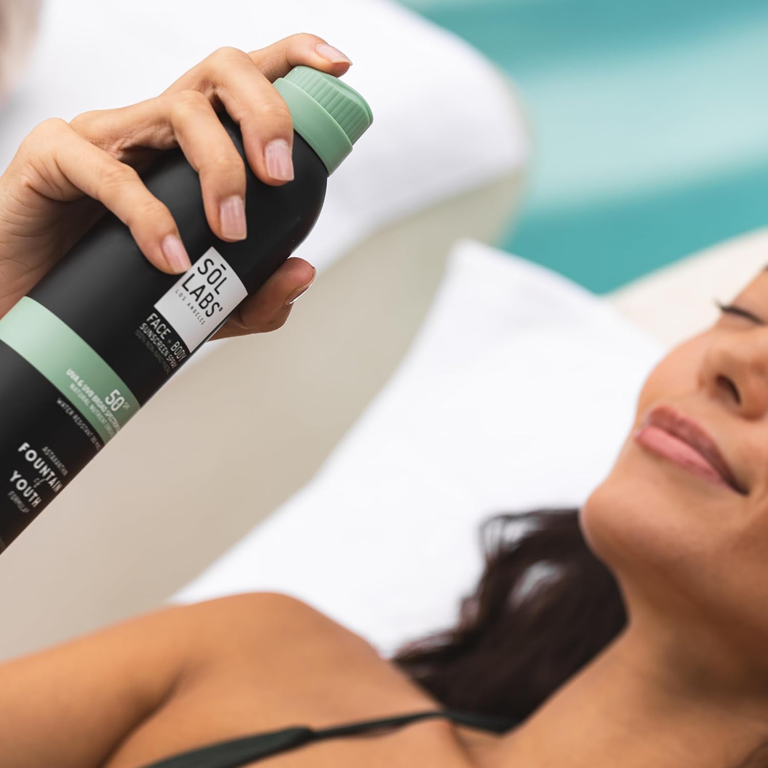- [Clean, Conscious, and Non-Aerosol Formula for Healthier Skin] - Free from parabens, synthetic fragrances, alcohol, and other harsh irritants, SOL LABS' sunscreen mist is vegan, cruelty-free, gluten-free, and non-GMO. The non-aerosol spray pump delivers a fine, even mist without pressurized gas, making it safer for your lungs, your skin, and the environment. Enjoy smart, sustainable skincare in every spray.