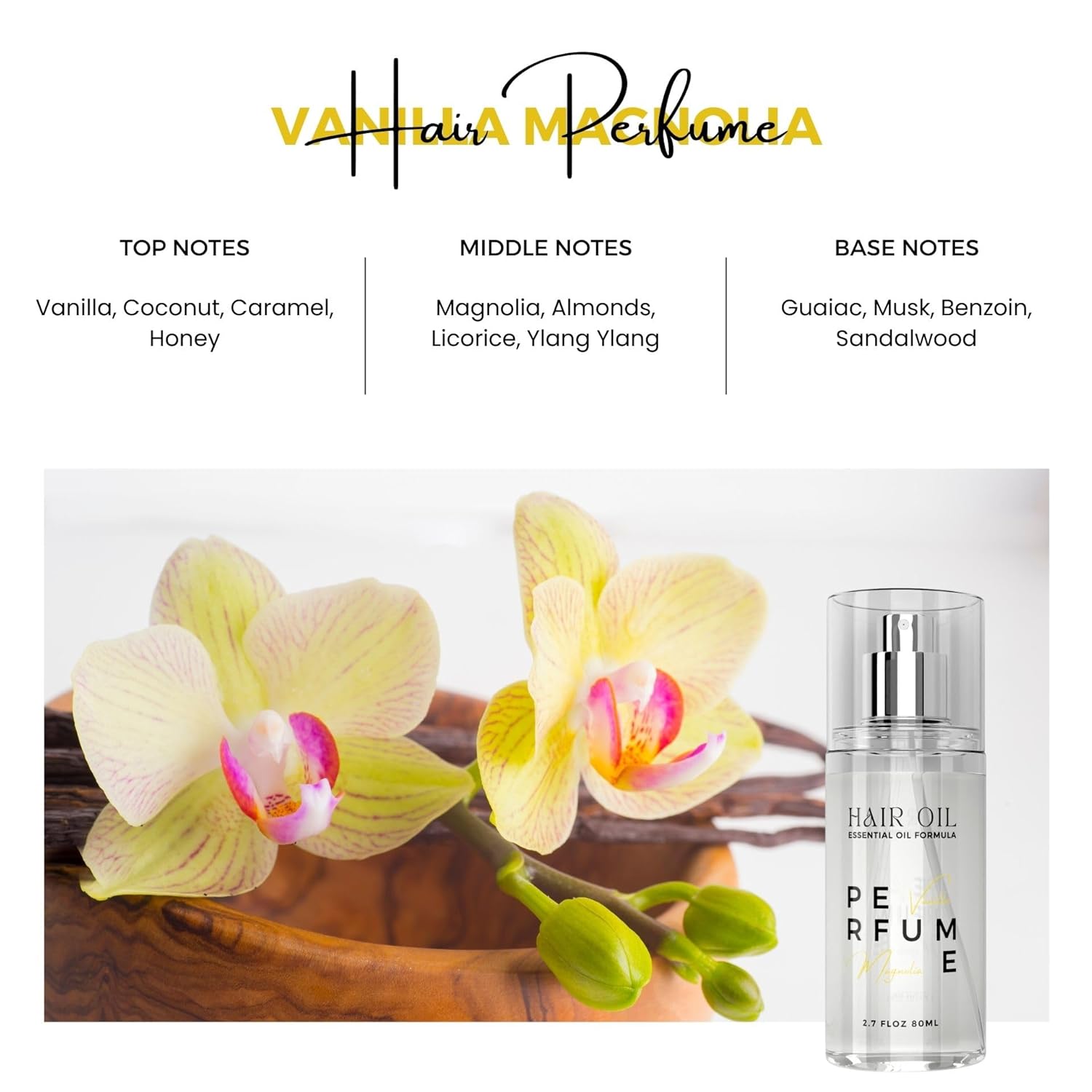 Hair Perfume Oil for Women (Vanilla Magnolia), Argan Oil Heat Protection Spray for Dry, Damaged, Firzzy Hair Care, Long Lasting Fragrance Mist with Keratin & Elastin for Nourishing & Smooth 2.7 fl oz