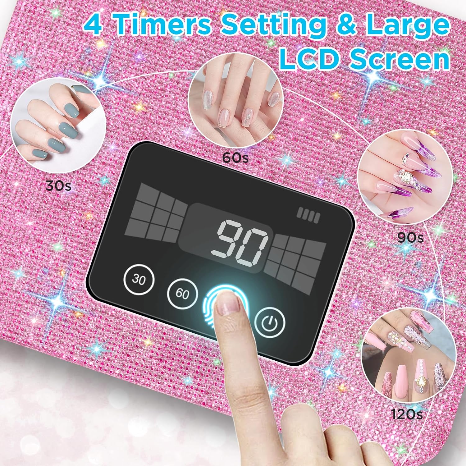- ๐ใ๐๐จ๐ง๐ฏ๐๐ง๐ข๐๐ง๐ญ 4 ๐๐ข๐ฆ๐๐ซ & ๐๐ฆ๐๐ซ๐ญ ๐๐๐ง๐ฌ๐จ๐ซใGel lamp has a large full-touch LCD display with 4 timer settings (30', 60', 90', 120' low heat mode). Automatic sensor - 1 Finger control with ease. Hands in, lights on. Perfect for DIY nail enthusiasts and salon quality nail art without any extra manual control.