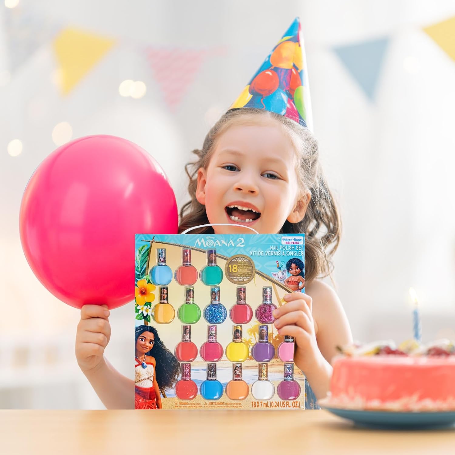 Townley Girl Moana 2 Non-Toxic Water-Based Peel Off Nail Polish Set with Glittery Shimmery Opaque Colors for Girls Kids Ages 3+ Perfect for Parties Spa Days Makeovers 18 Pcs
