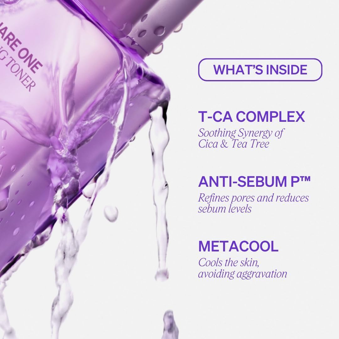 Square One Soothing Toner for Sensitive Skin with Calming CICA, Tea Tree, Anti-Sebum, Antioxidants, AHA, PHA, Niacinamide, Vegan, Cooling, Fragrance-Free | 5.07 fl oz ✦ 150ml