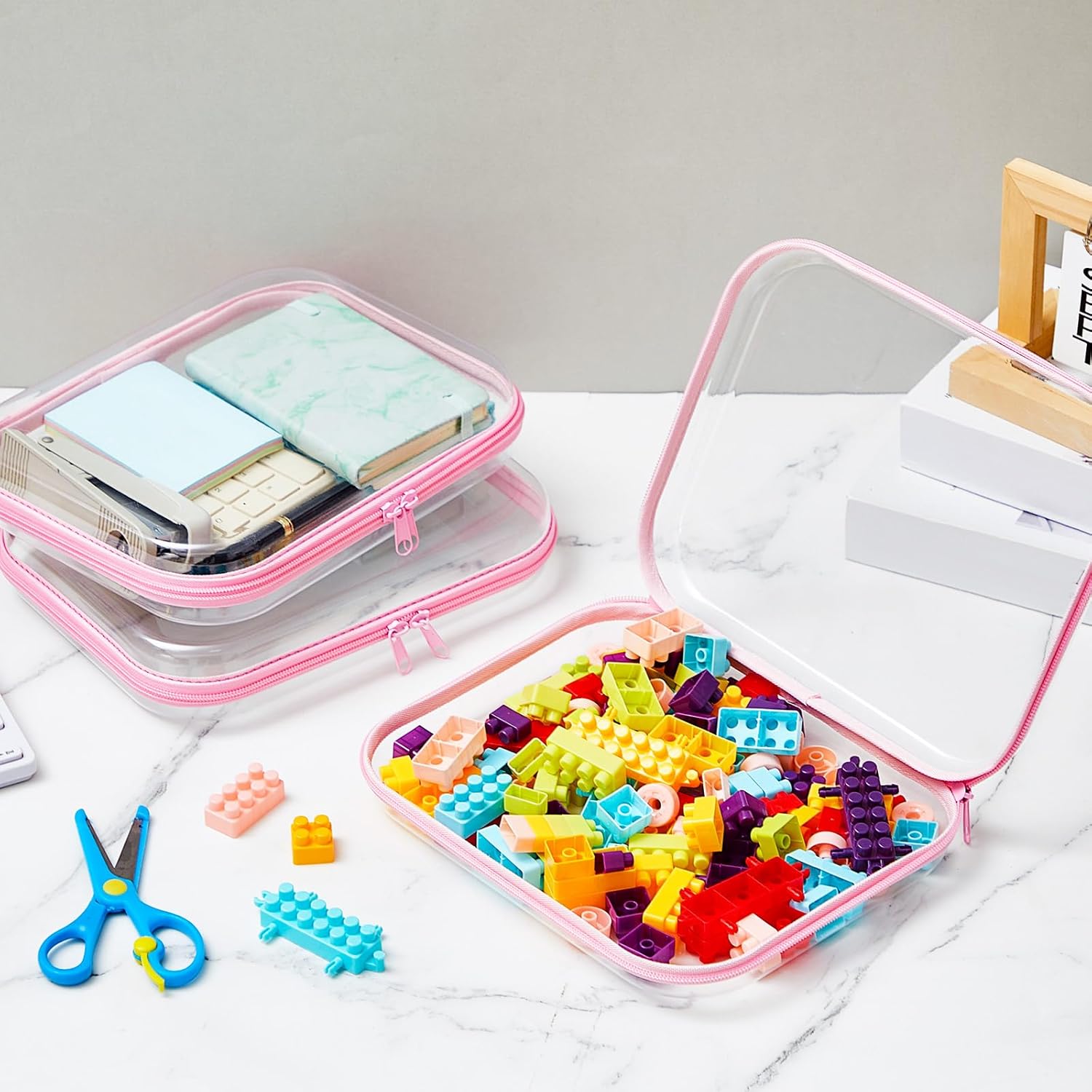 - Wide Range of Scenarios: these clear hard zipper cases offer a flexible solution for organizing everything from toiletries and cosmetics to office supplies and electronics; Their robust design keeps your essentials secure, making them suitable for use in classrooms, offices, bedrooms, bathrooms, laundry rooms, kitchens, craft spaces, and garages; Whether at home or outside, work, these cases adapt to your needs, bringing order to every corner of your life