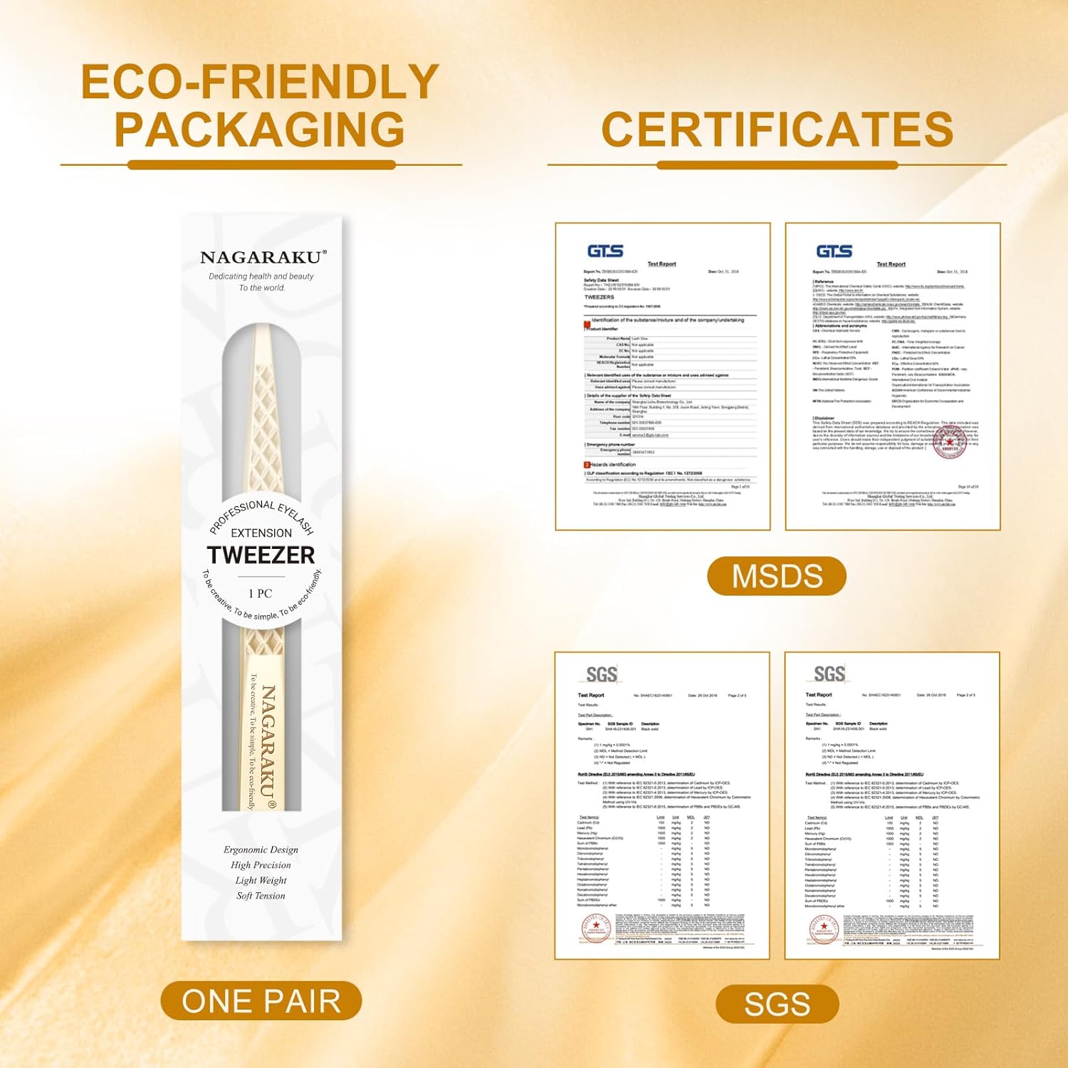 - 80 Degree Tweezer AG-10: Color: Gold / 4.45 inches; Width: 0.39 inches. These handcrafted tweezers are made of high-strength stainless steel, which is resistant to most acids and other corrosive agents. We give each tweezer a box to protect the tweezers